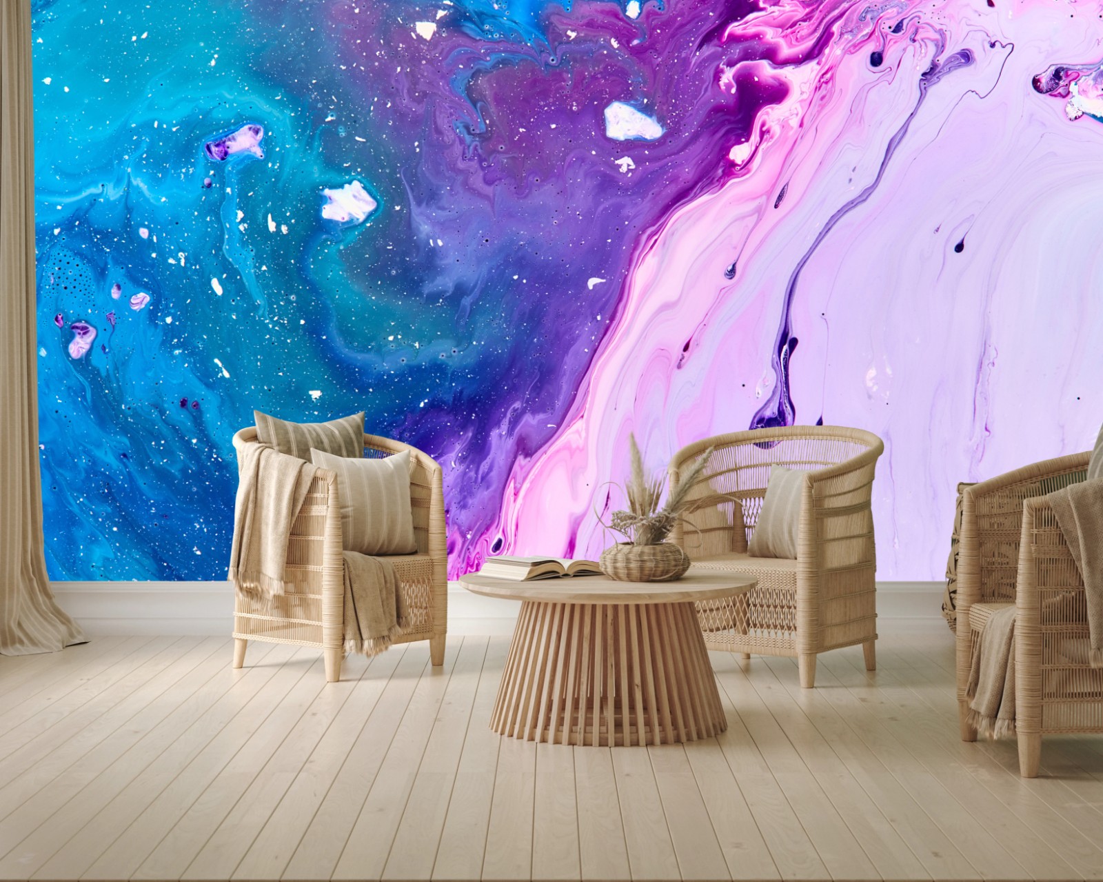 Fototapete Lebendige blau-violette abstrakte acrylmalerei
