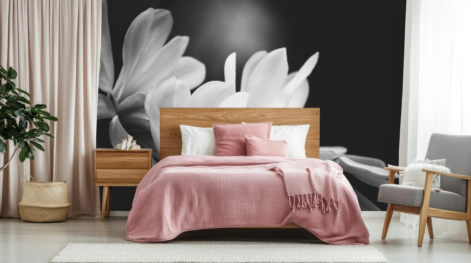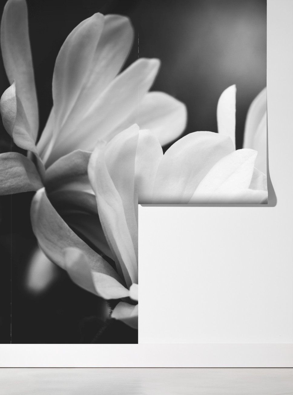 Elegante Schwarzweißaufnahme einer Magnolienblüte verleiht jedem Raum eine ruhige, minimalistische Atmosphäre.
