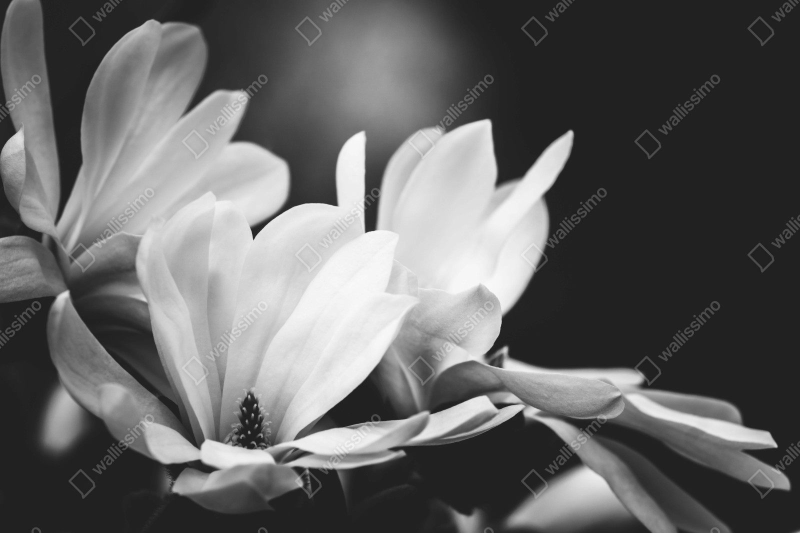 Fototapete schwarzweiß magnolienblüte nahaufnahme