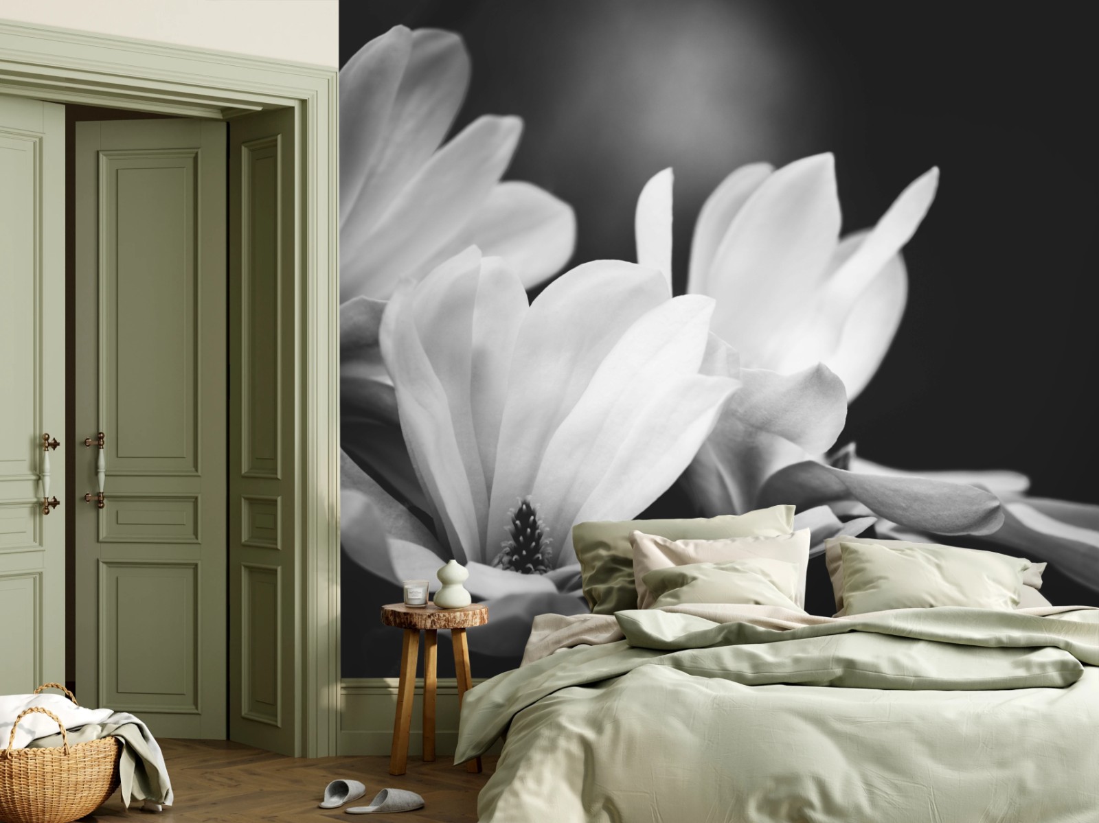 Fototapete Schwarzweiß magnolienblüte nahaufnahme