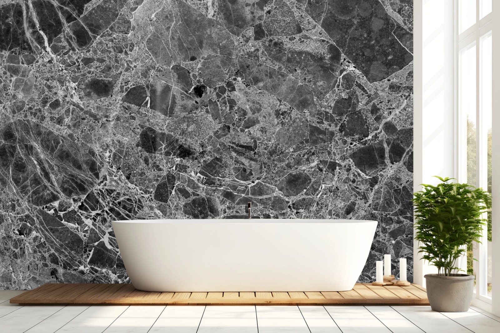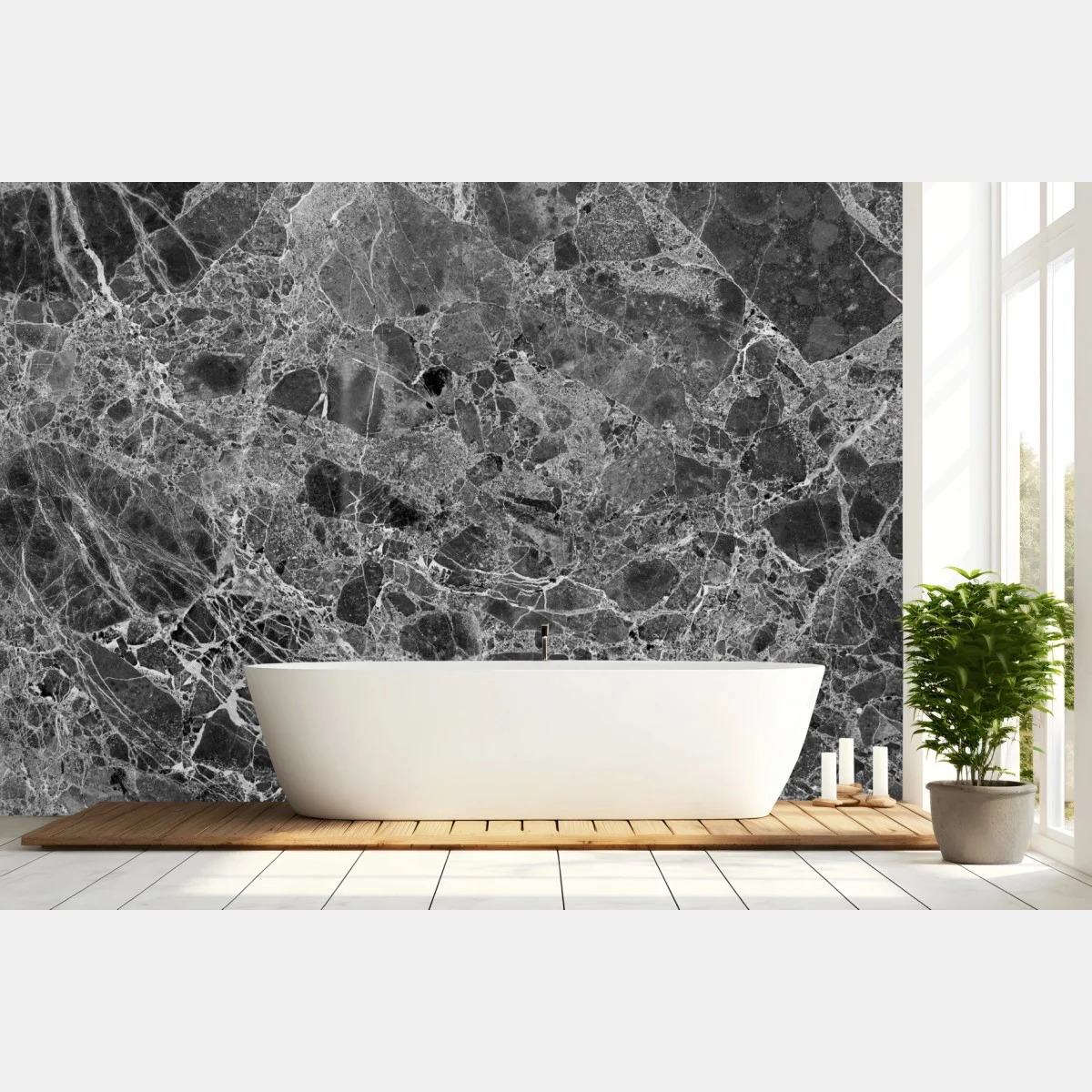 Verleihen Sie Ihrem Raum mit dieser markanten monochromen Marmortextur zeitlose Eleganz und raffinierte Tiefe.MehrWeniger