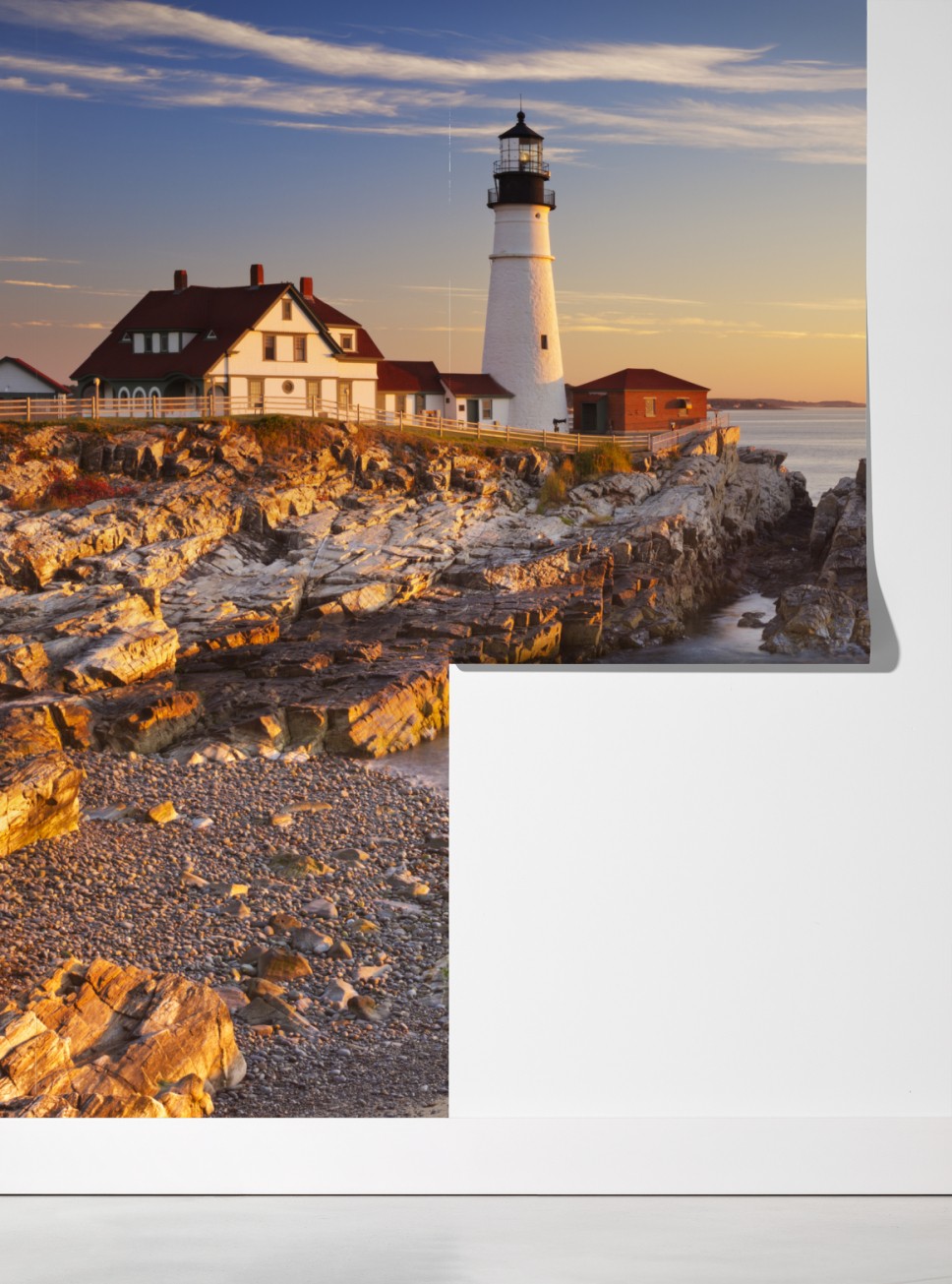 Bringen Sie maritime Ruhe in Ihre Räume mit dem Anblick des Portland Head Leuchtturms bei Sonnenaufgang.
