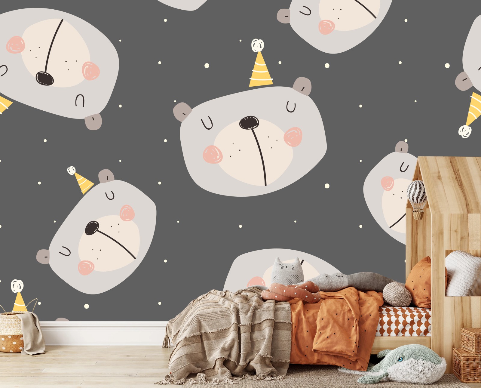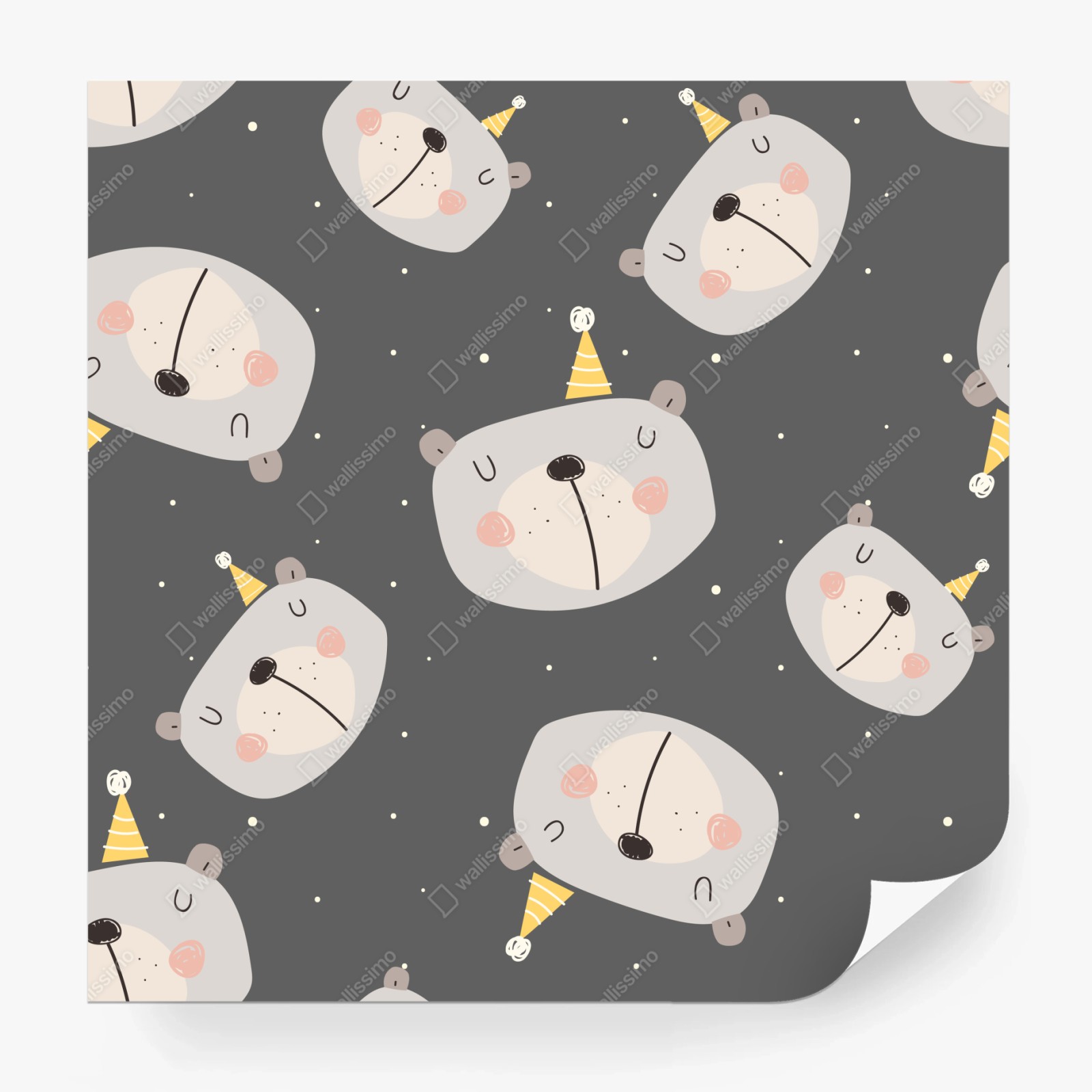 Charmante pastellbären auf grauem Hintergrund schaffen ein beruhigendes, verspieltes Muster, ideal für Kinderzimmer und Babyzimmer.MehrWeniger
