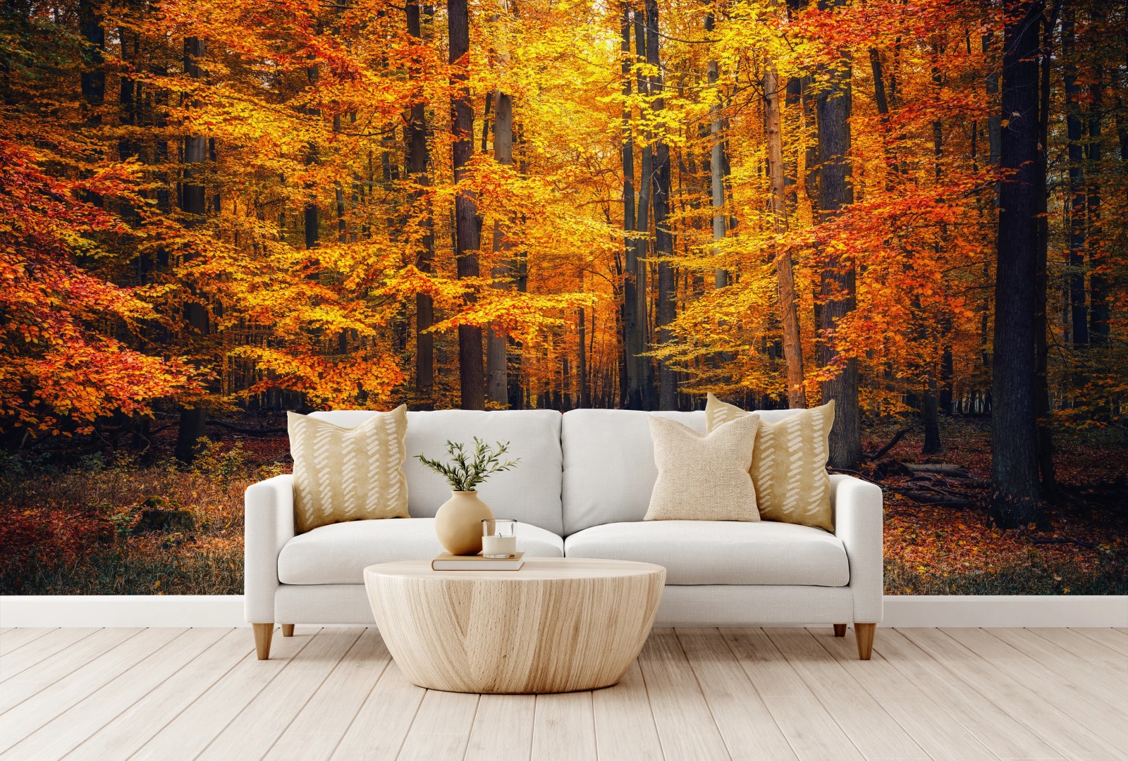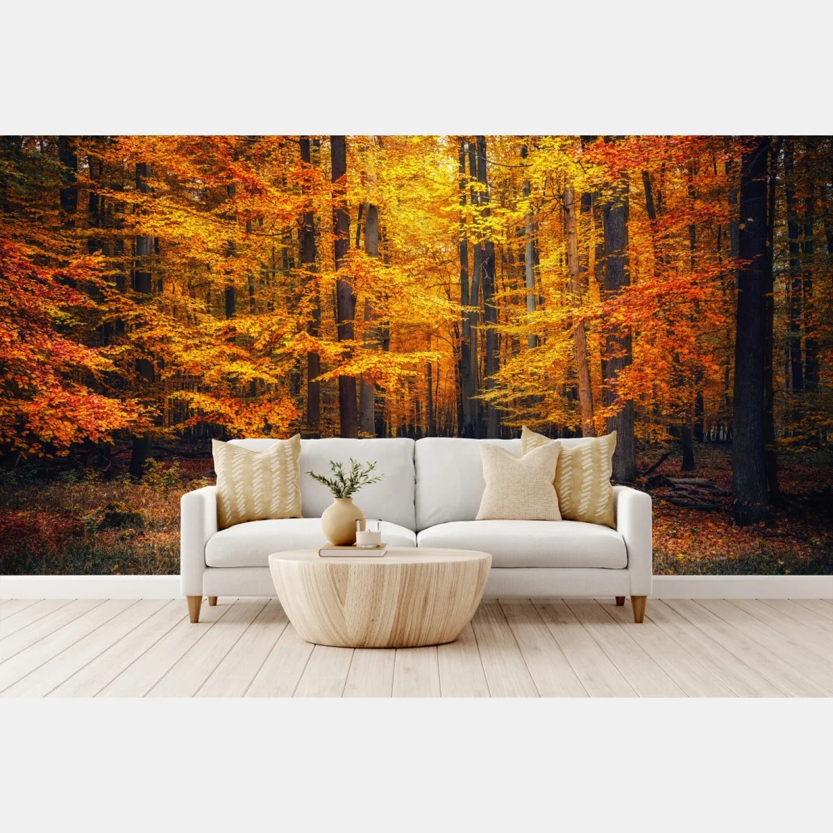 Fototapete Herbstlicher waldpfad mit goldenen blättern