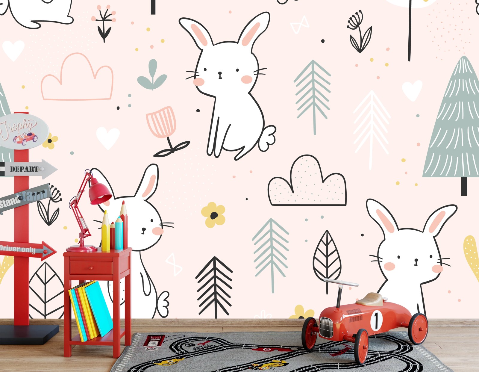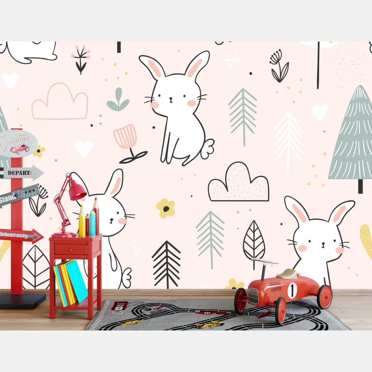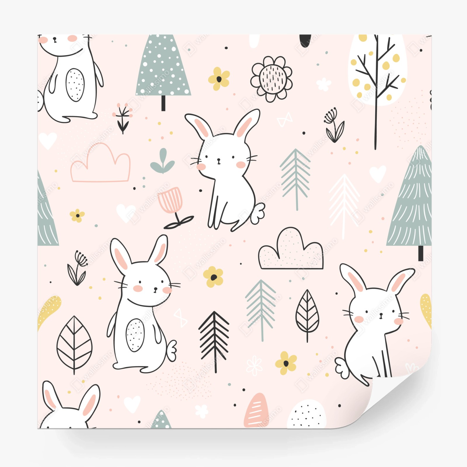 Fototapete Verspieltes hasenmuster für kinderzimmer