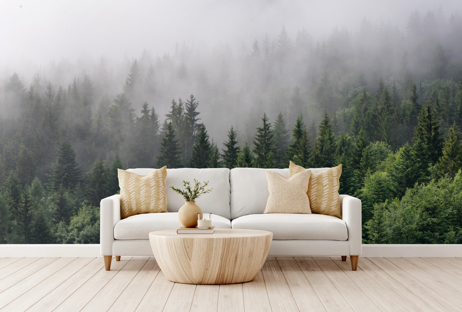 Fototapete Nebliger immergrüner wald panorama