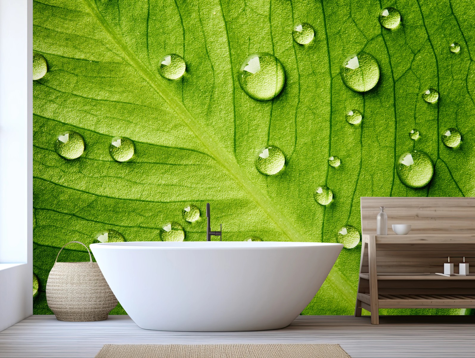 Fototapete Frisches grünes blatt mit wassertropfen