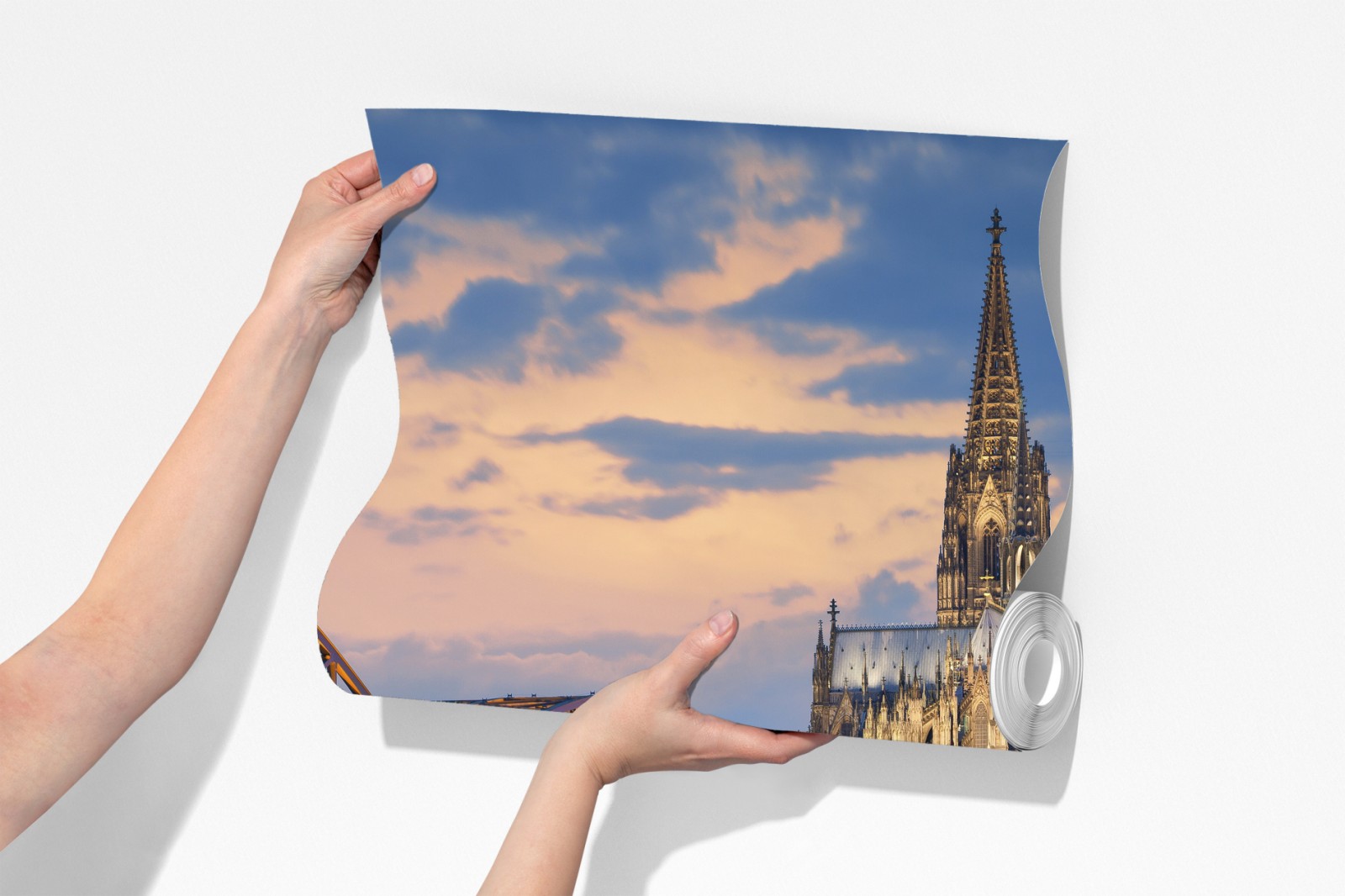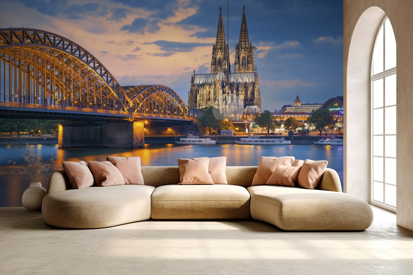 Fototapete Kölner Dom und Hohenzollernbrücke bei dämmerung