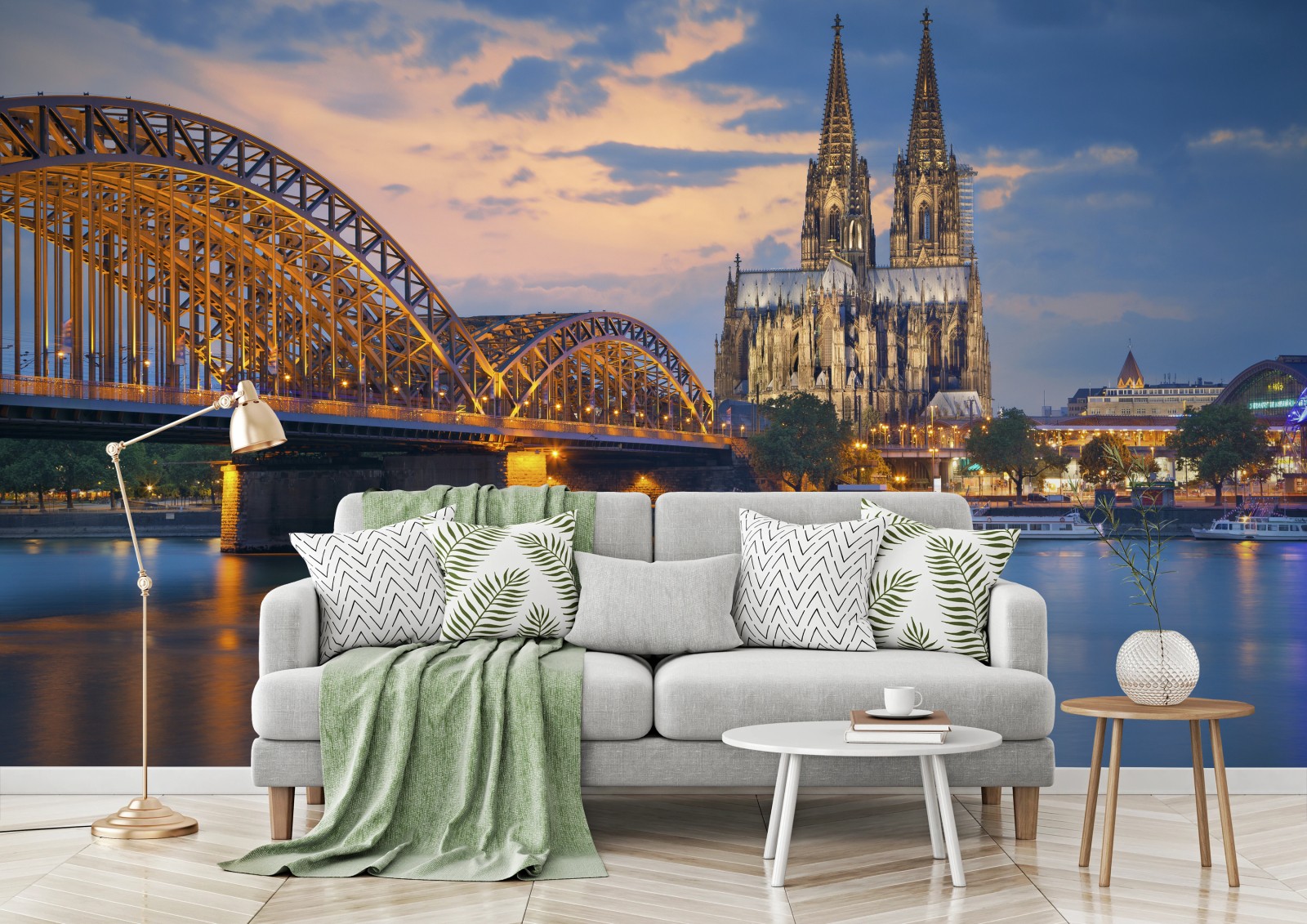 Fototapete Kölner Dom und Hohenzollernbrücke bei dämmerung