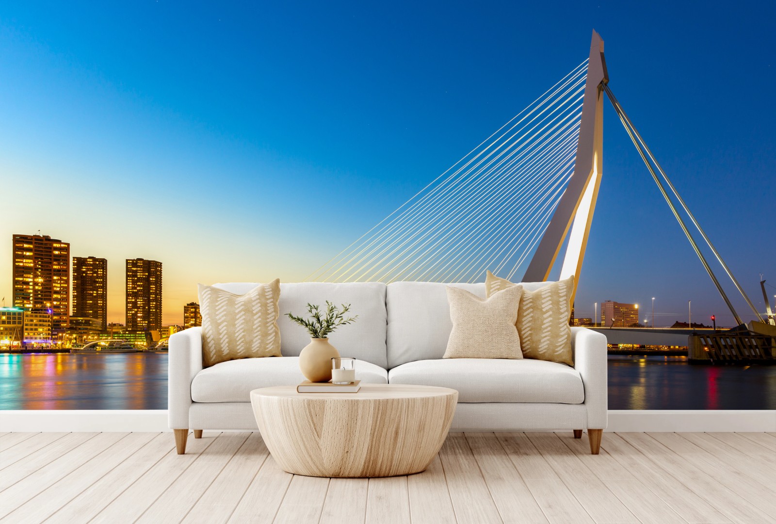 Fototapete Rotterdam Erasmusbrücke bei dämmerung