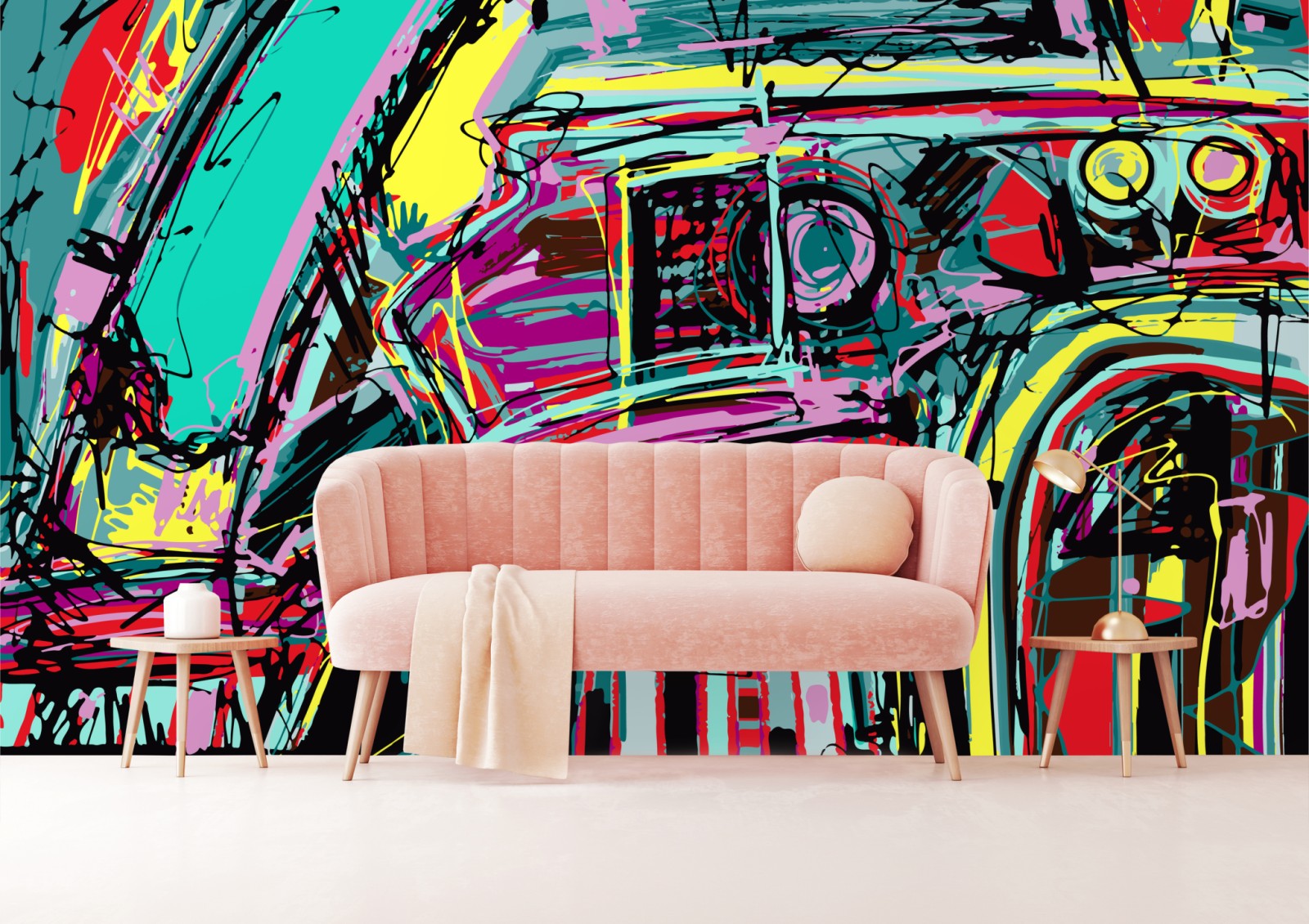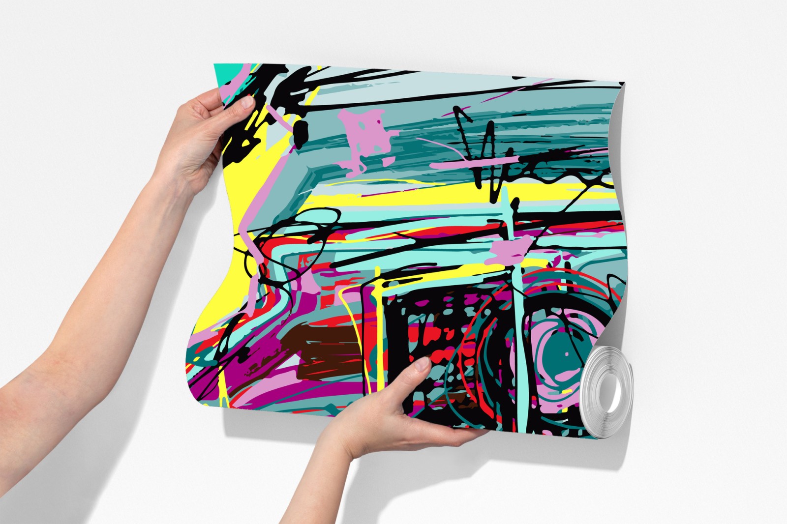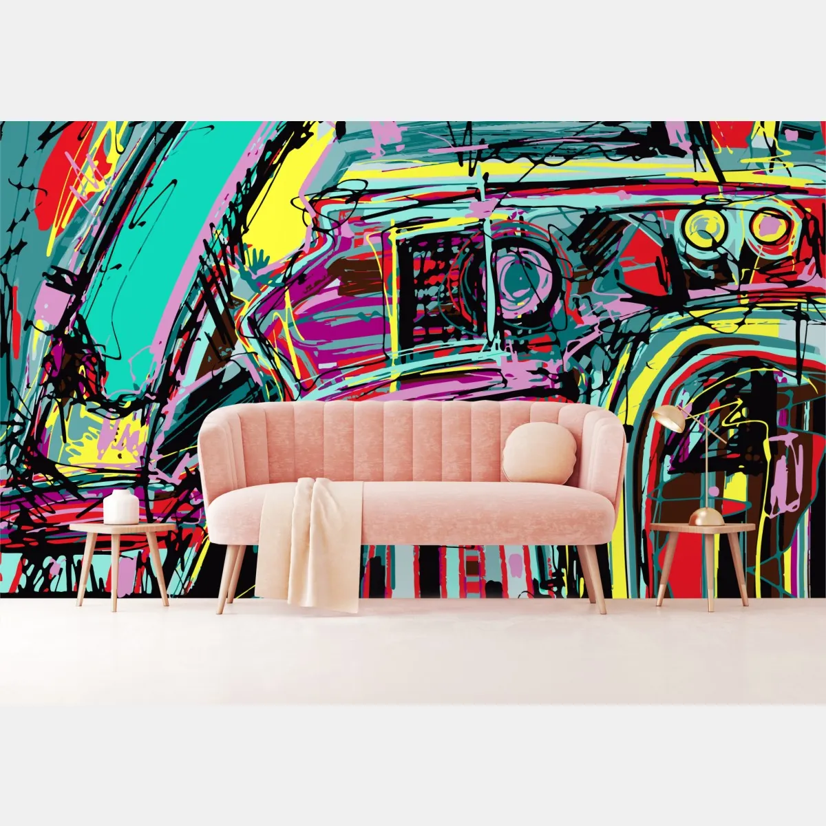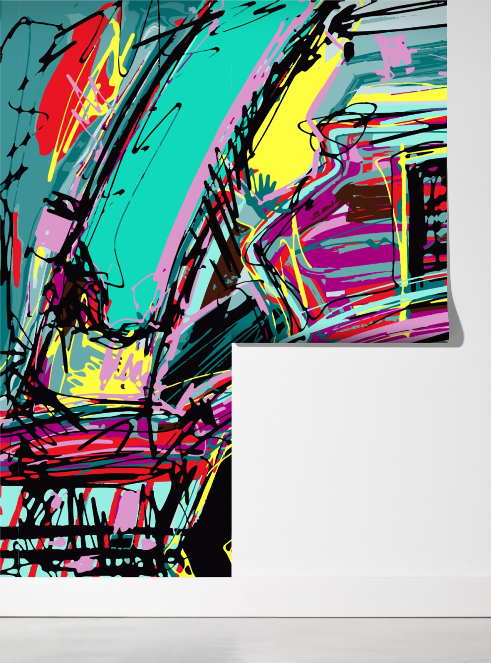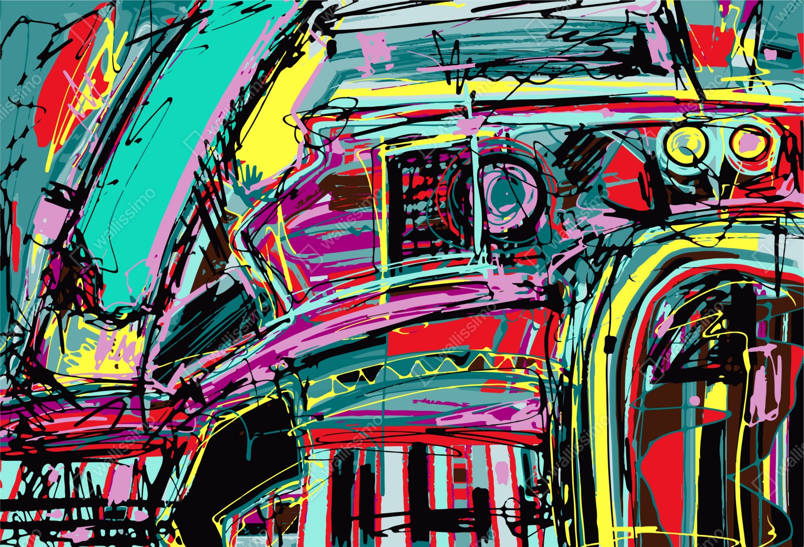 Verleihen Sie Ihrem Raum Energie mit diesem lebhaften abstrakten Kunstwerk in kräftigen Farben und dynamischen Linien.