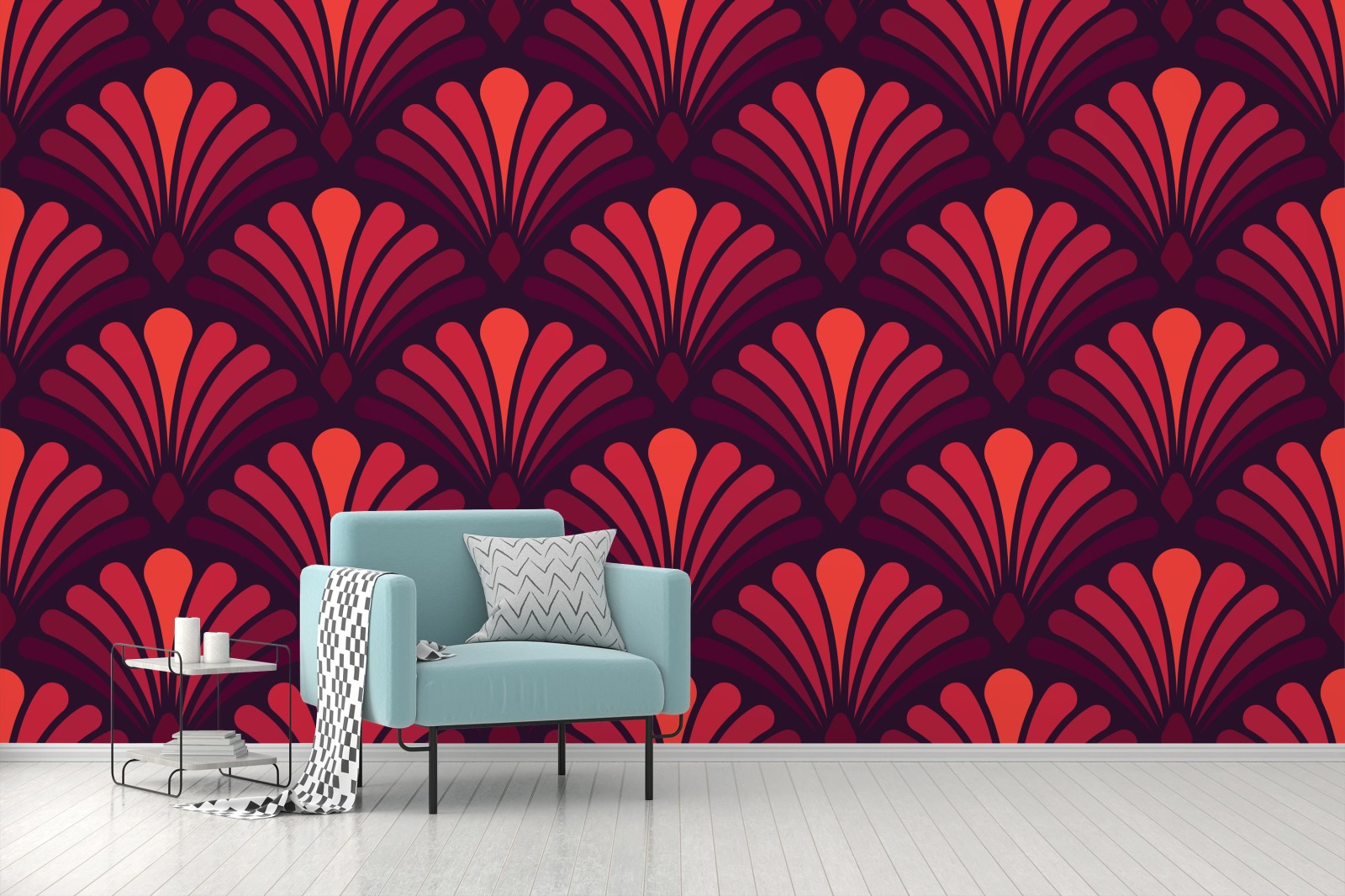 Fototapete Geometrisches art-déco fächermuster in warmen rot- und violetttönen