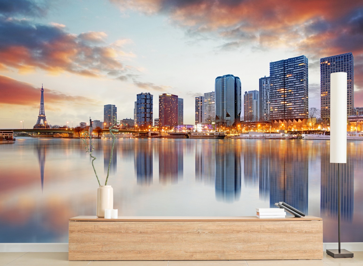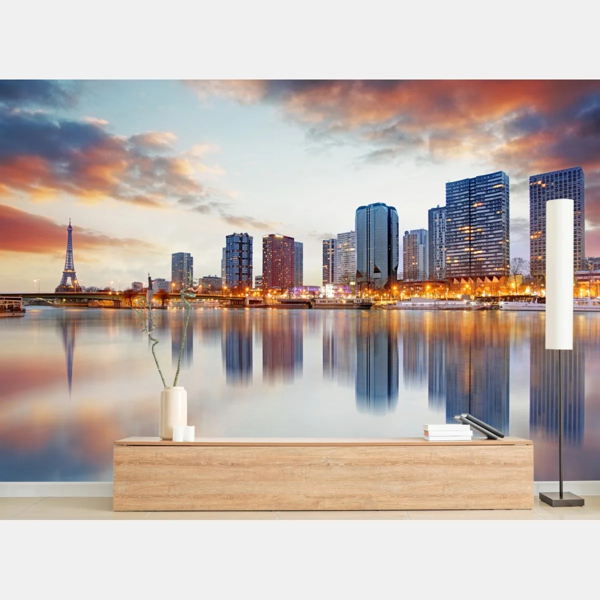 Fototapete Paris skyline bei sonnenuntergang mit Eiffelturm
