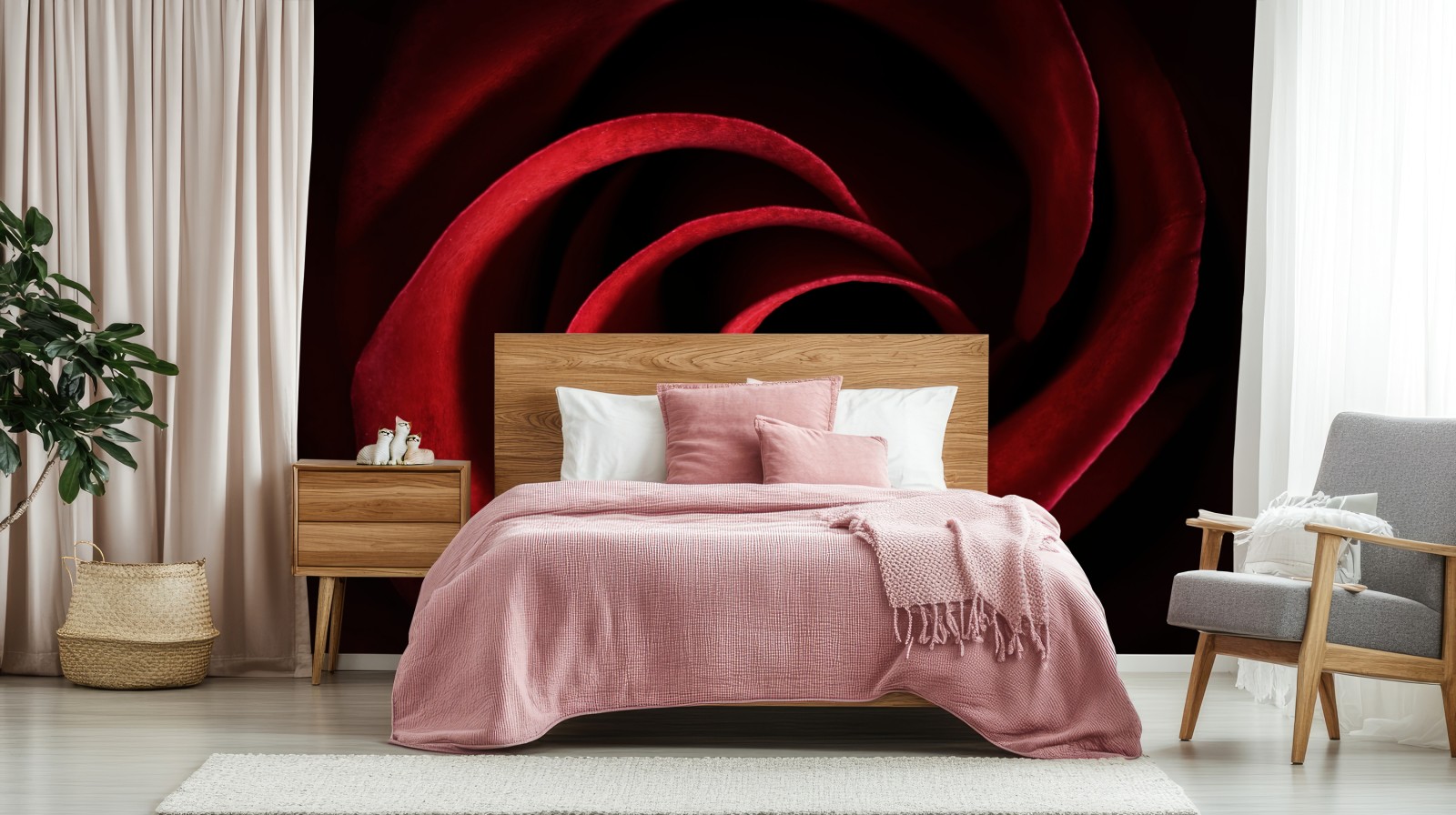 Verleihen Sie Ihrem Raum eine sinnliche Eleganz mit einer dramatischen Nahaufnahme tiefroter Rosenblätter, die einen starken und intimen Blickfang schafft.