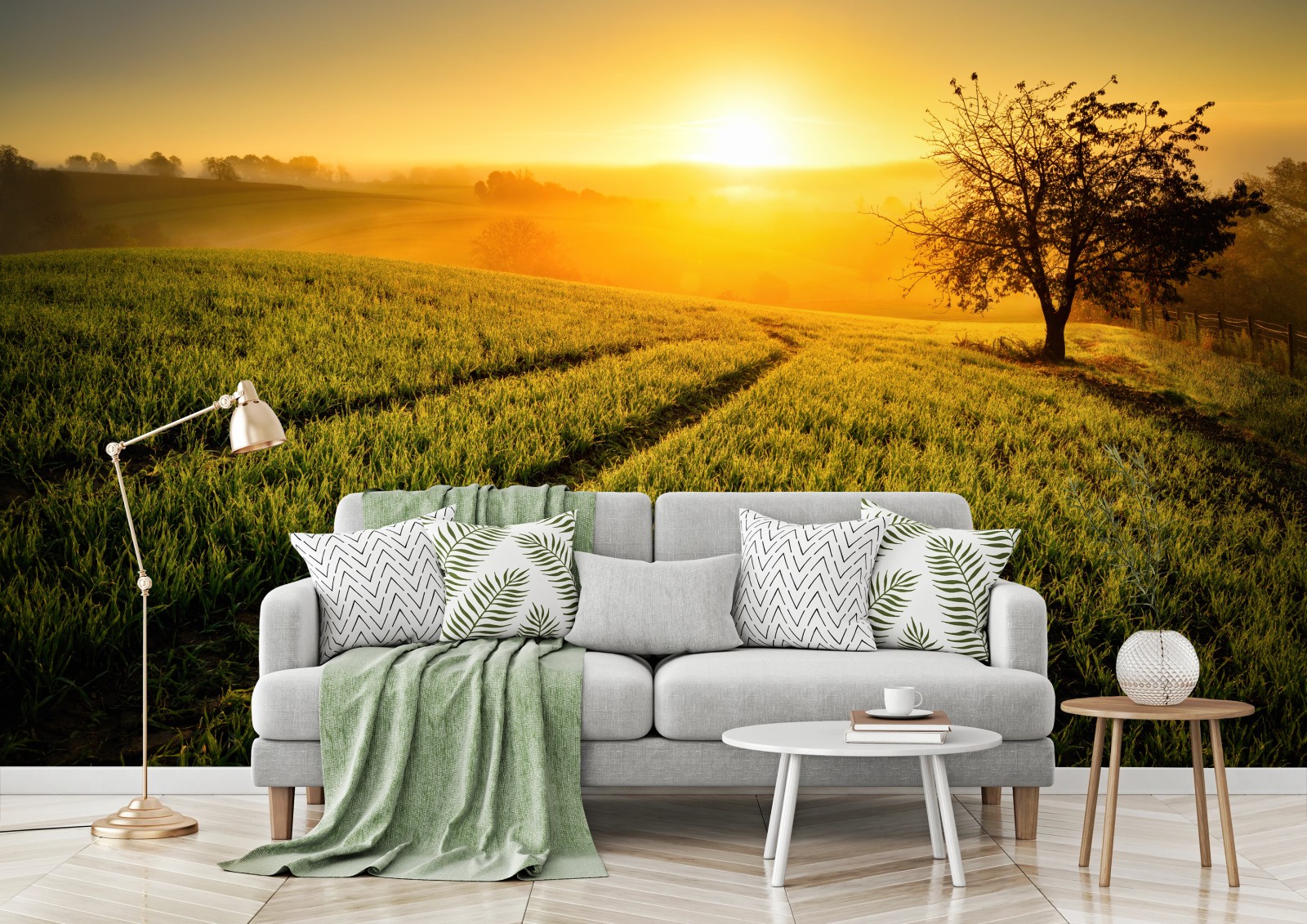 Fototapete Sonnenbeschienene wiese im frühlicht