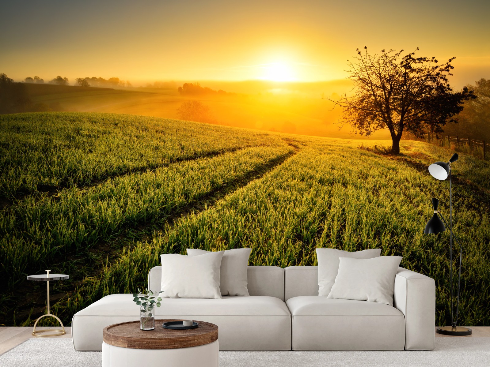 Fototapete Sonnenbeschienene wiese im frühlicht