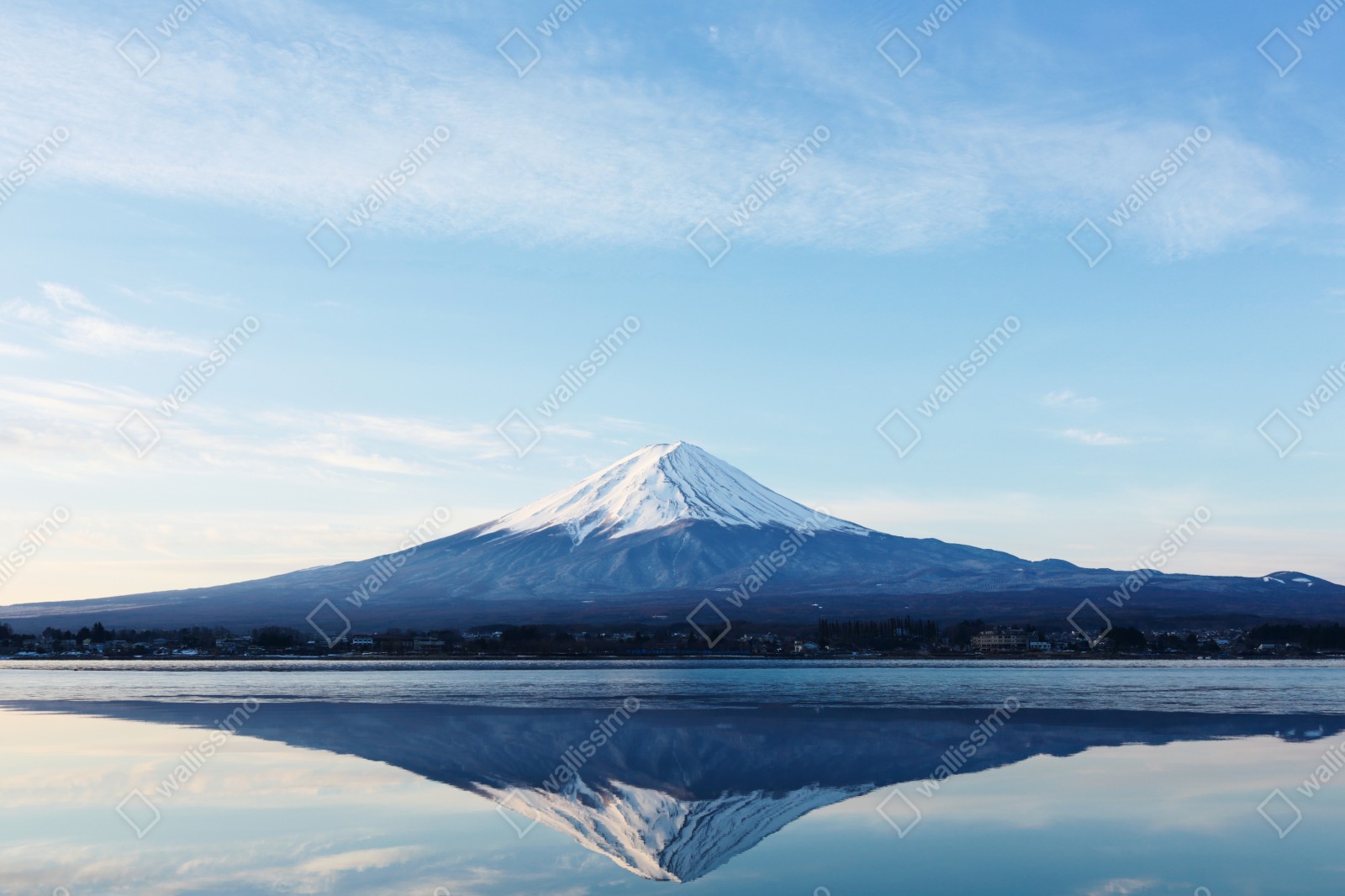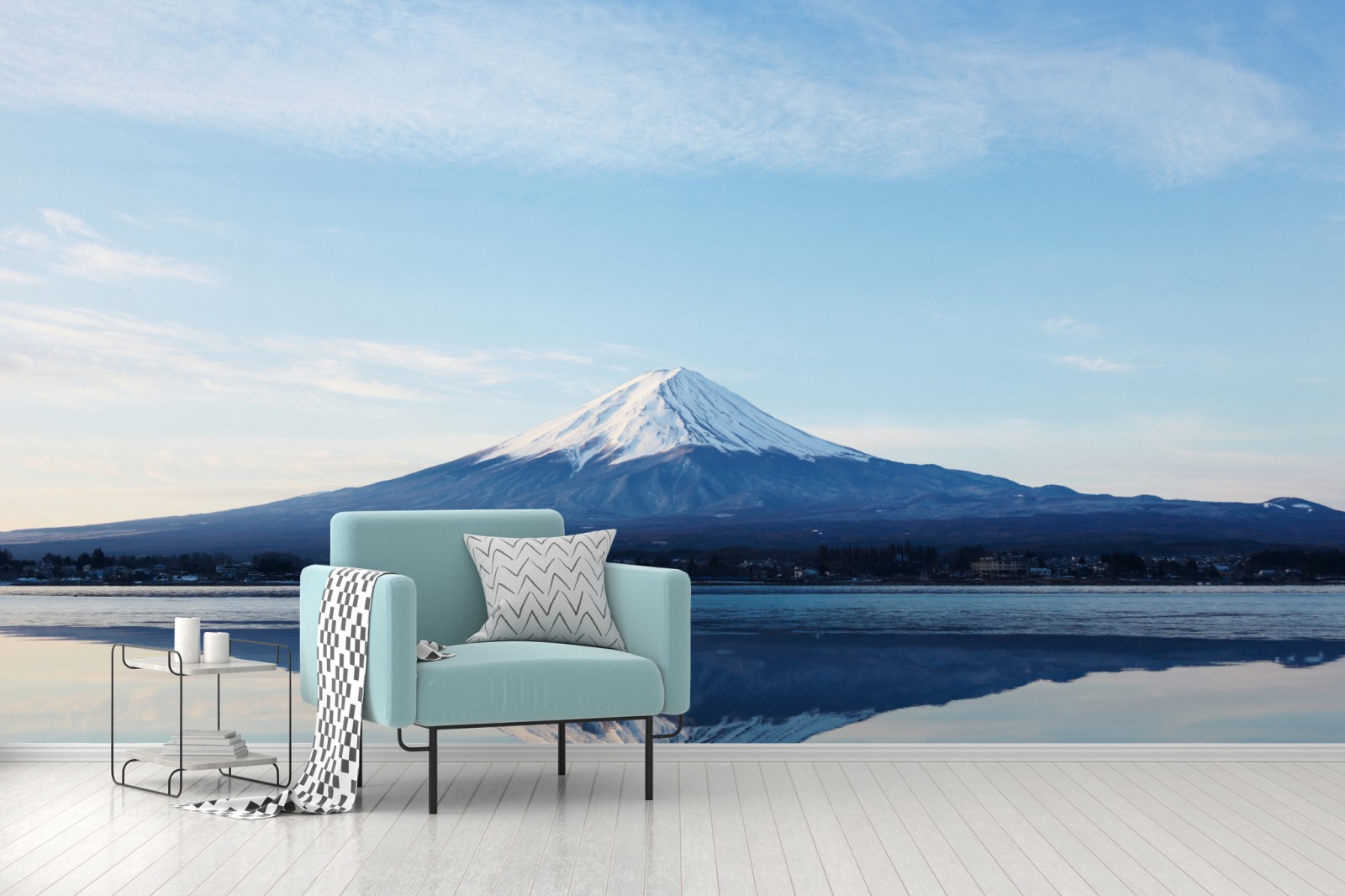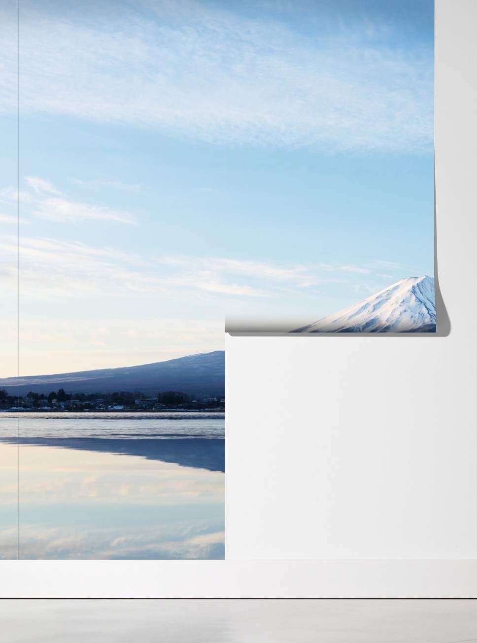 Bringen Sie ruhige Berglandschaft ins Zuhause mit der klaren Spiegelung des Fuji im See, perfekt um eine natürliche und entspannende Atmosphäre zu schaffen.