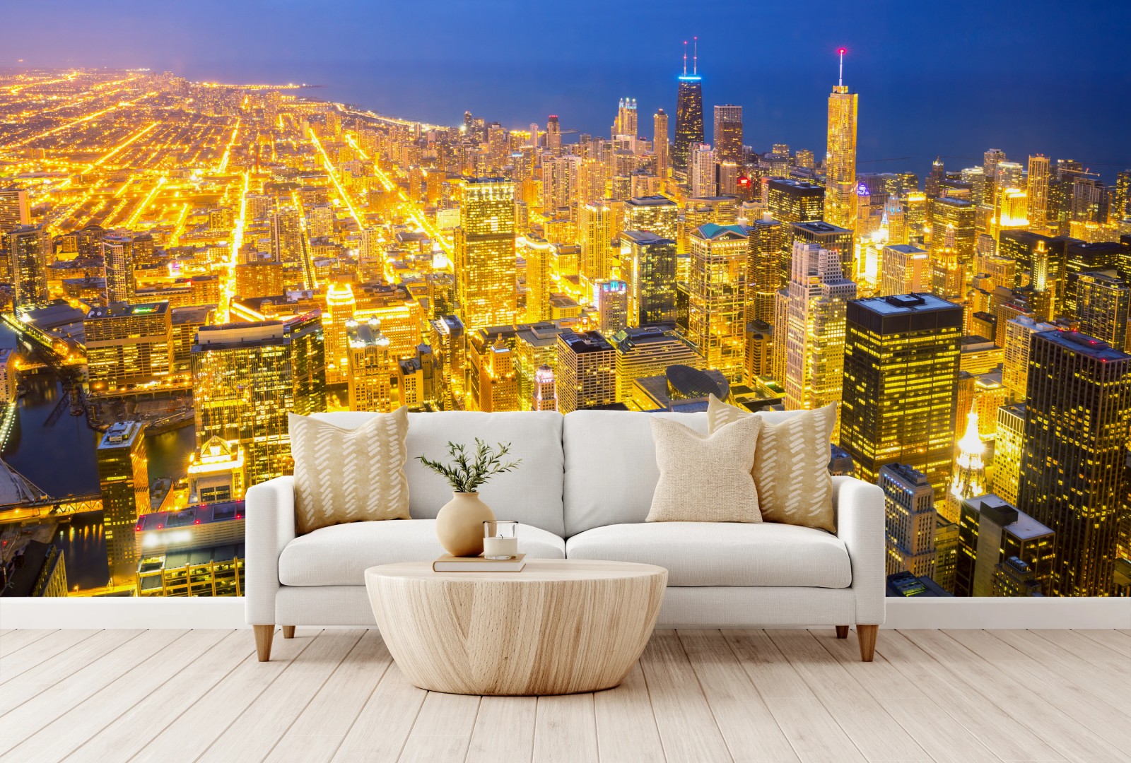 Fototapete Luftaufnahme der nächtlichen skyline von Chicago
