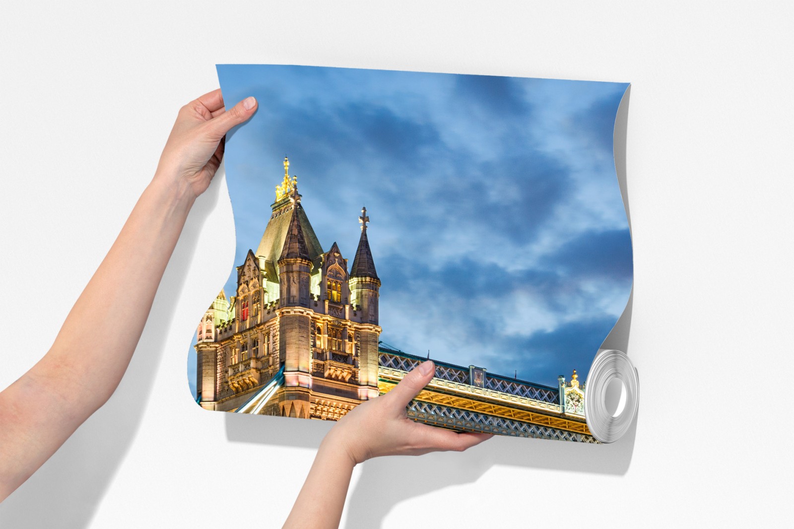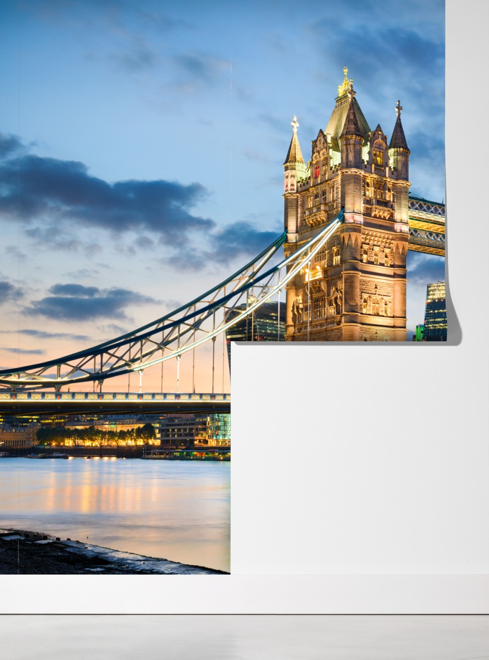 Bringen Sie die abendliche Skyline von London in Ihr Zuhause mit diesem lebendigen Foto der Tower Bridge bei Dämmerung.