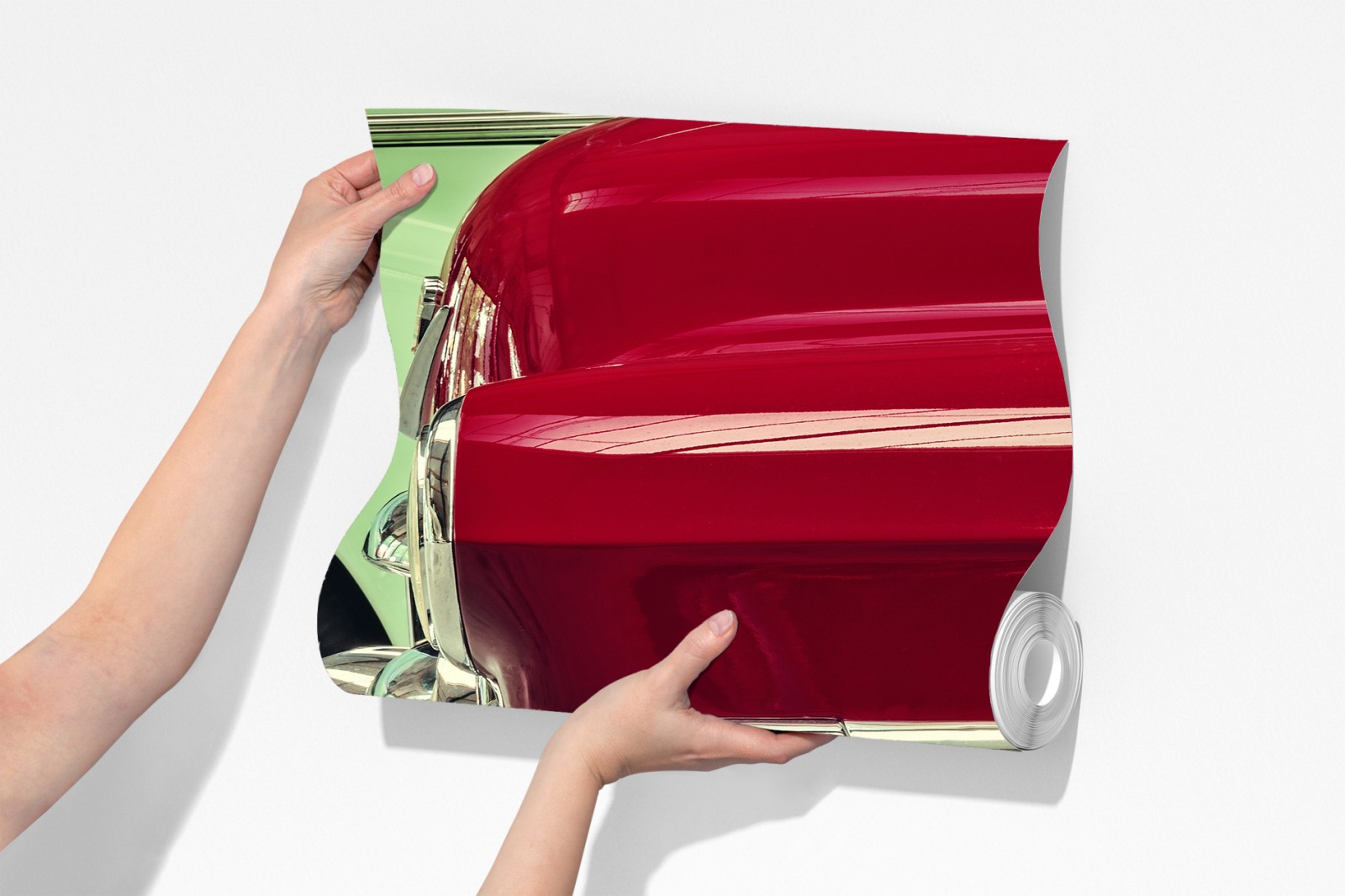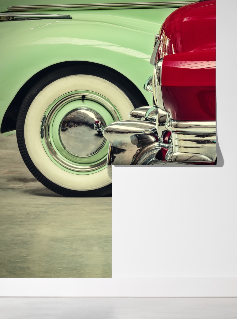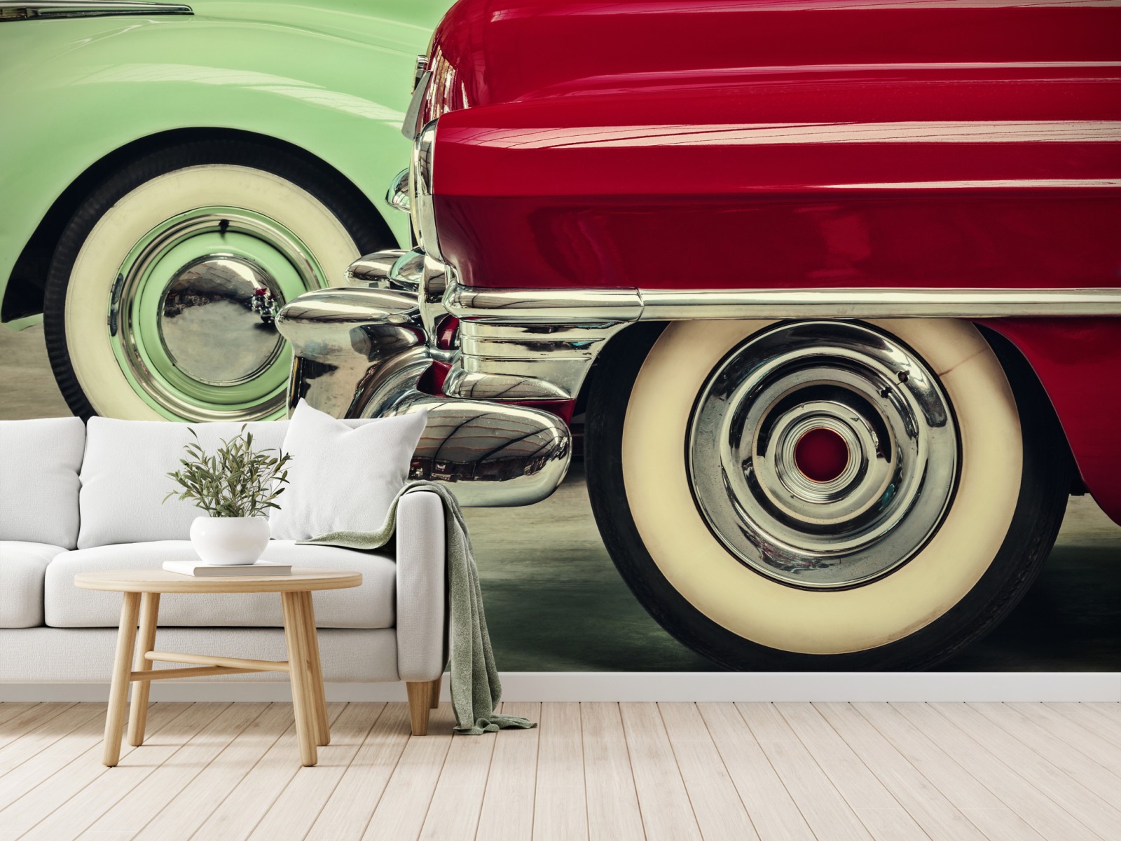 Fototapete nahaufnahme klassischer autos in rot und mint