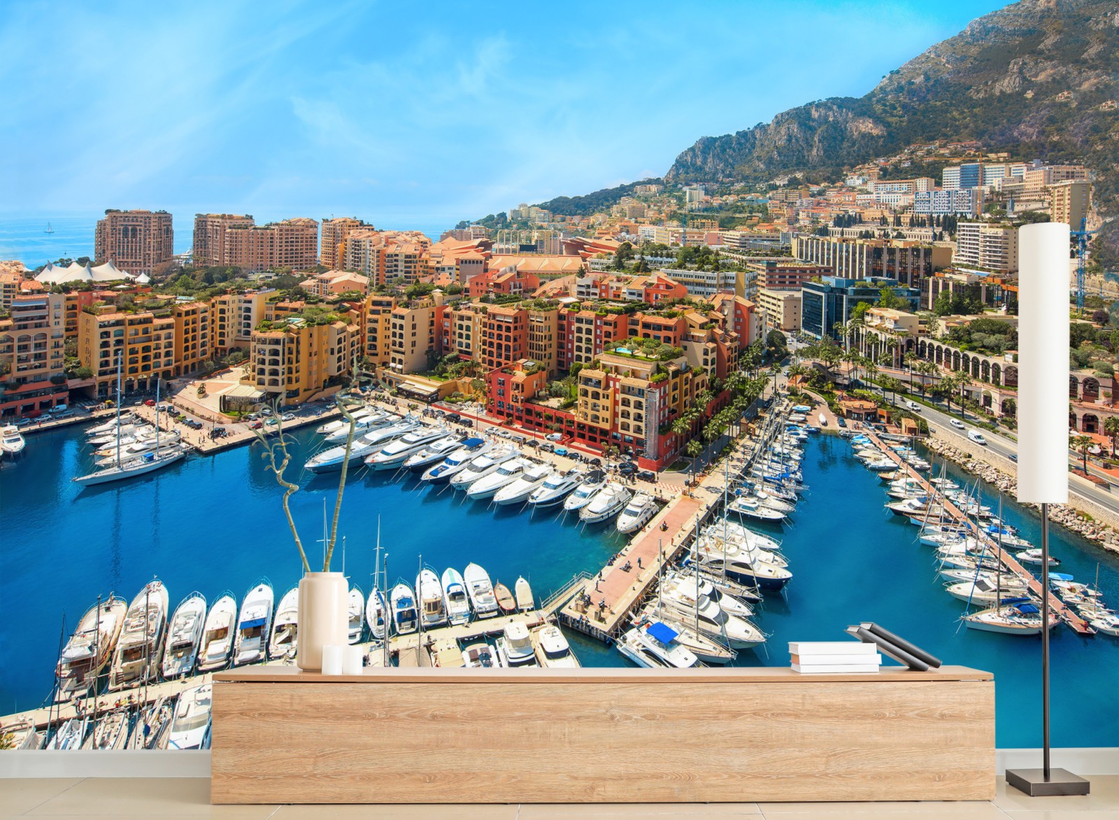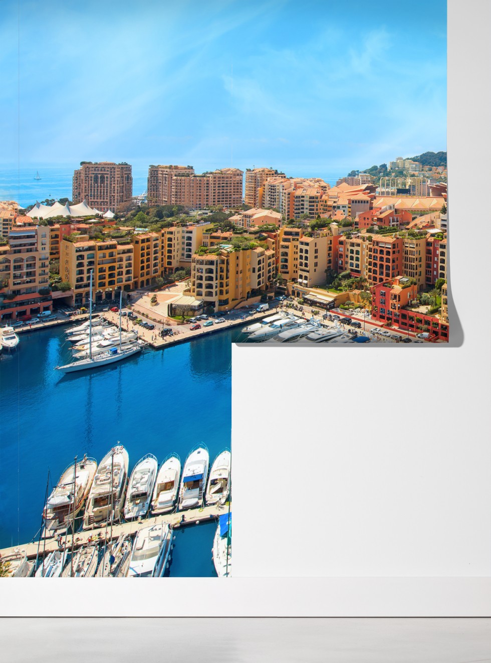 Bringen Sie die lebendige Stimmung einer sonnigen Marina in Ihr Zuhause mit diesem kräftigen Küstenstadtmotiv, ideal um jedem Raum einen Hauch von Luxus und Urlaubsfeeling zu verleihen.