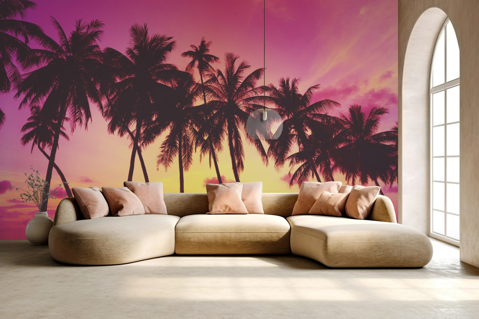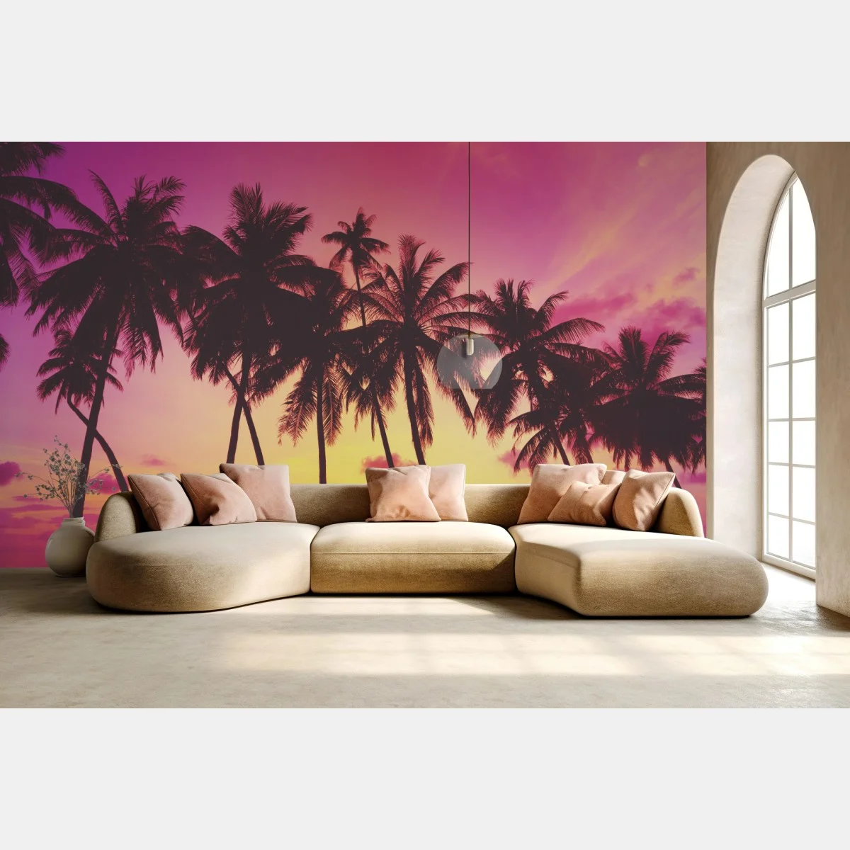 Fototapete Tropischer sonnenuntergang mit palmen, Thailand