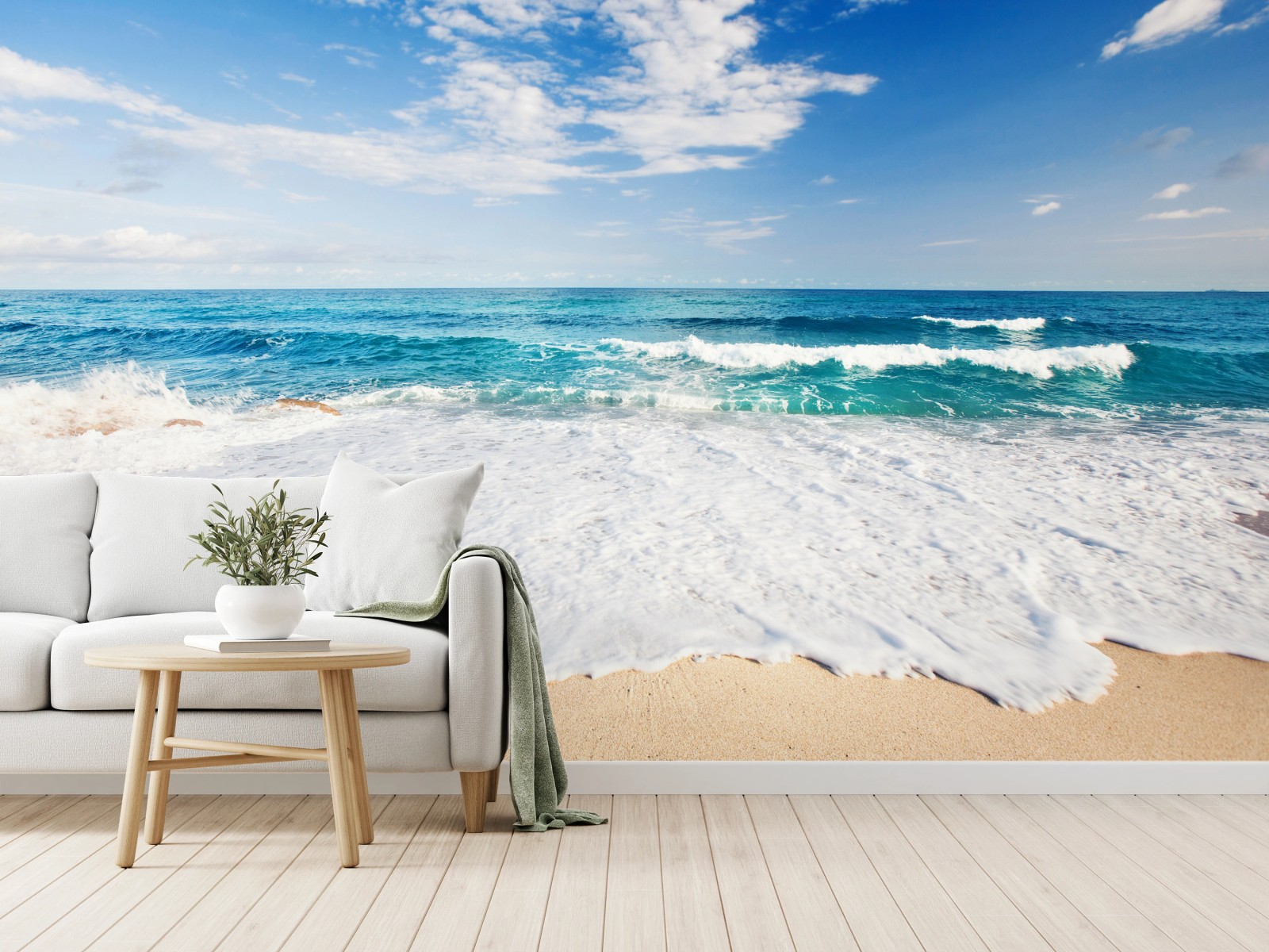 Fototapete Türkisfarbene wellen am sandstrand
