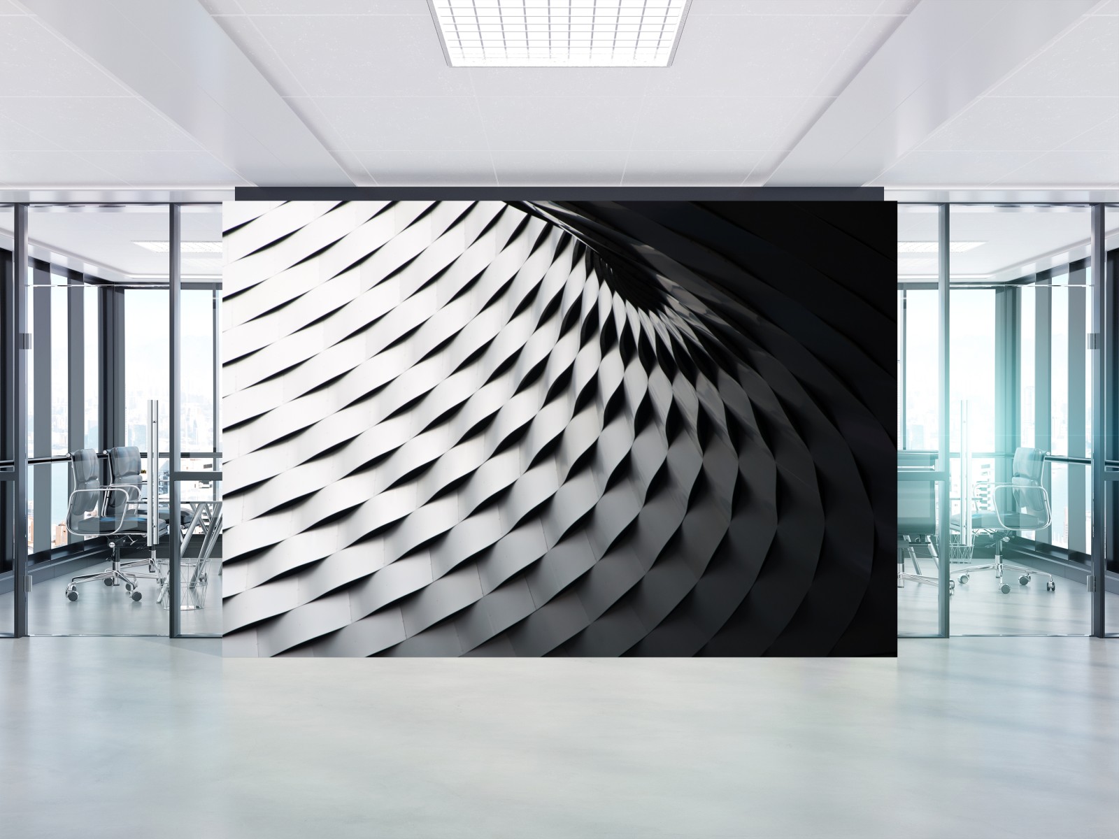 Verleihen Sie Ihrem Raum Ausdruck mit diesem markanten monochromen Metallmuster, das Geometrie und Struktur für einen modernen, industriellen Look vereint.