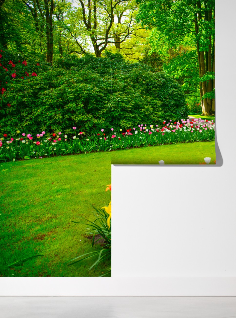 Bringen Sie die lebendigen Farben von Keukenhof in Ihren Raum mit dieser üppigen Tulpengartenszene, ideal, um jedem Raum natürliche Energie und Gelassenheit zu verleihen.