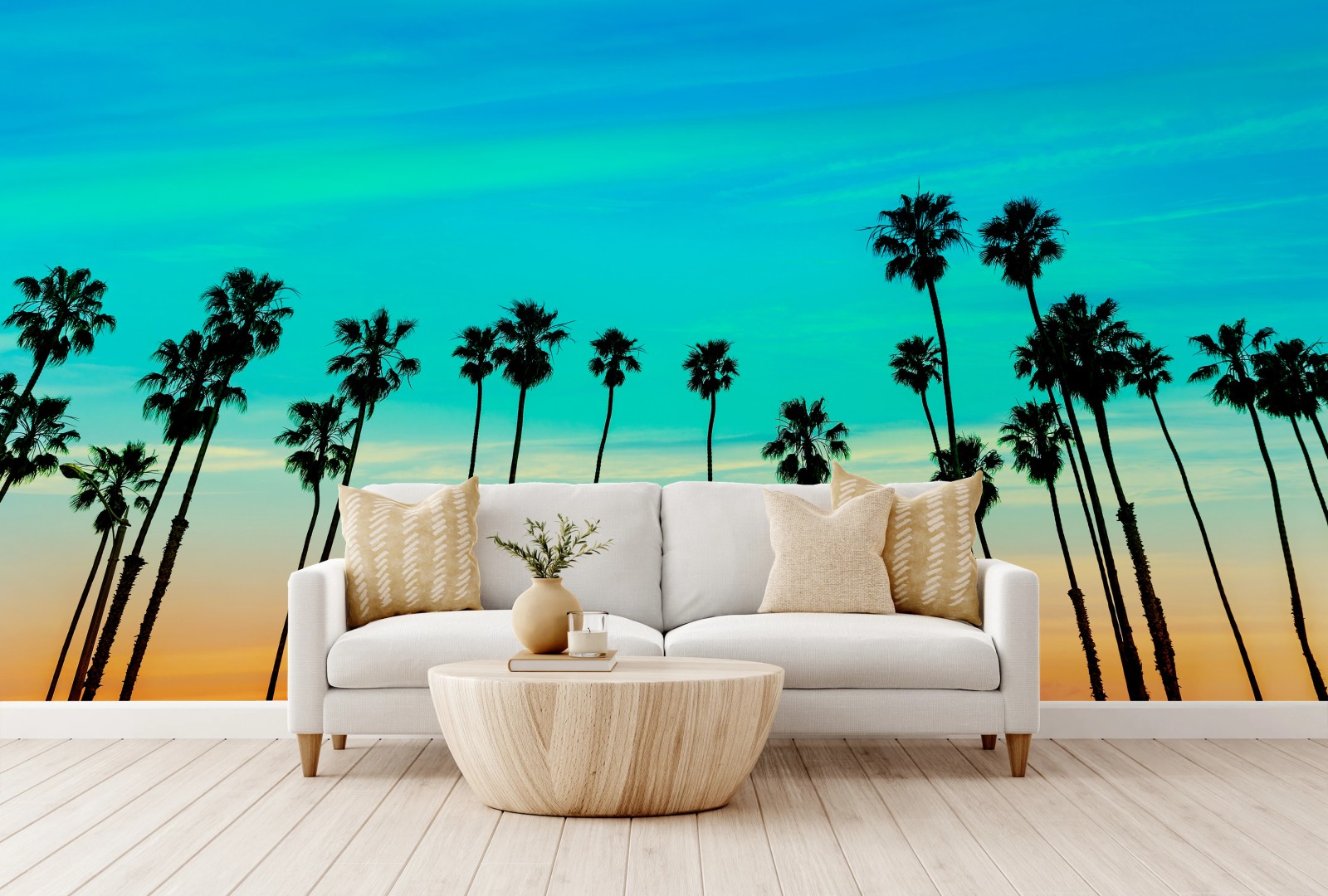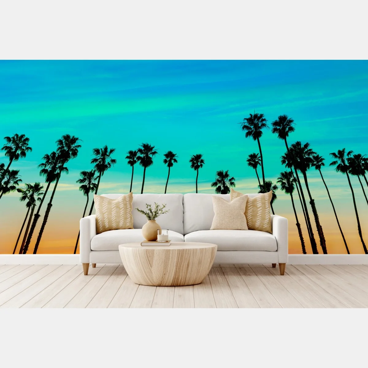 Fototapete Palmen-silhouette bei sonnenuntergang in Kalifornien