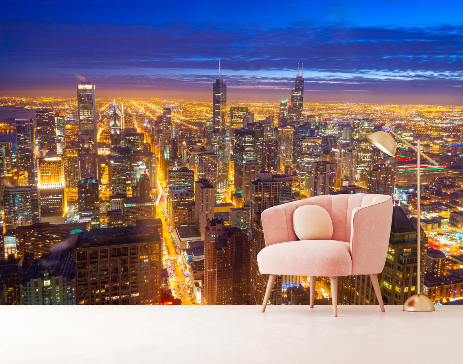 Erleben Sie die nächtliche Atmosphäre von Chicago mit funkelnden Lichtern und beeindruckenden Wolkenkratzern.