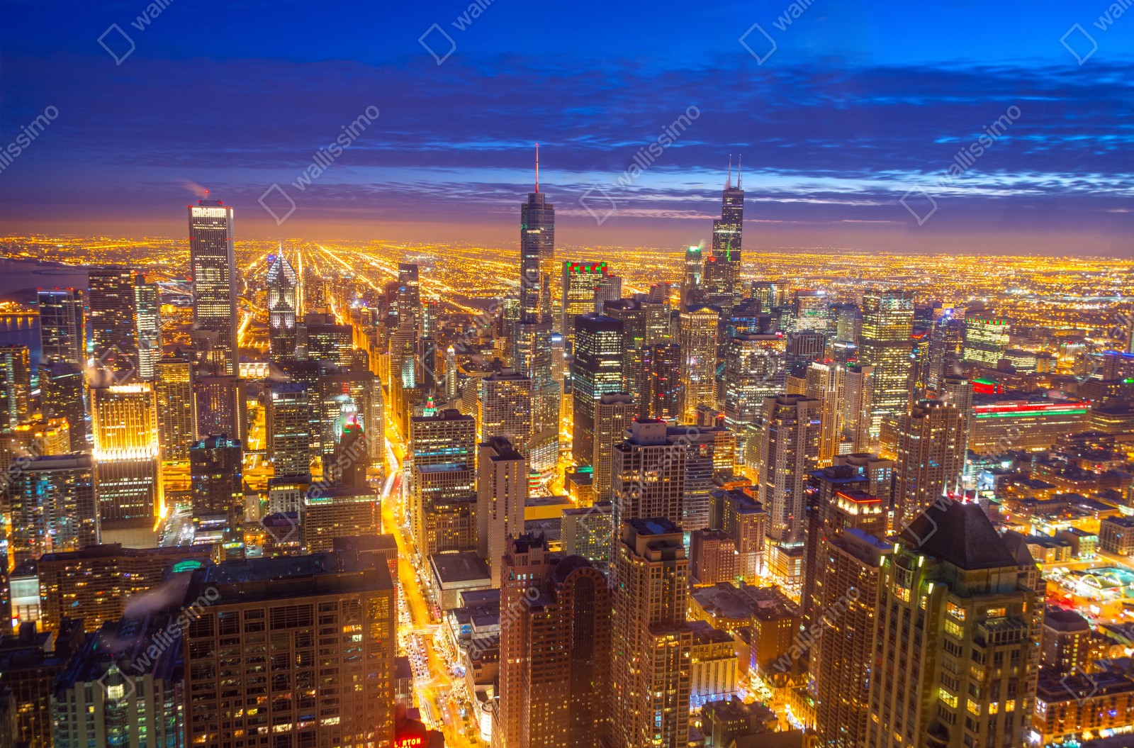 Fototapete Chicago nächtliche skyline panorama