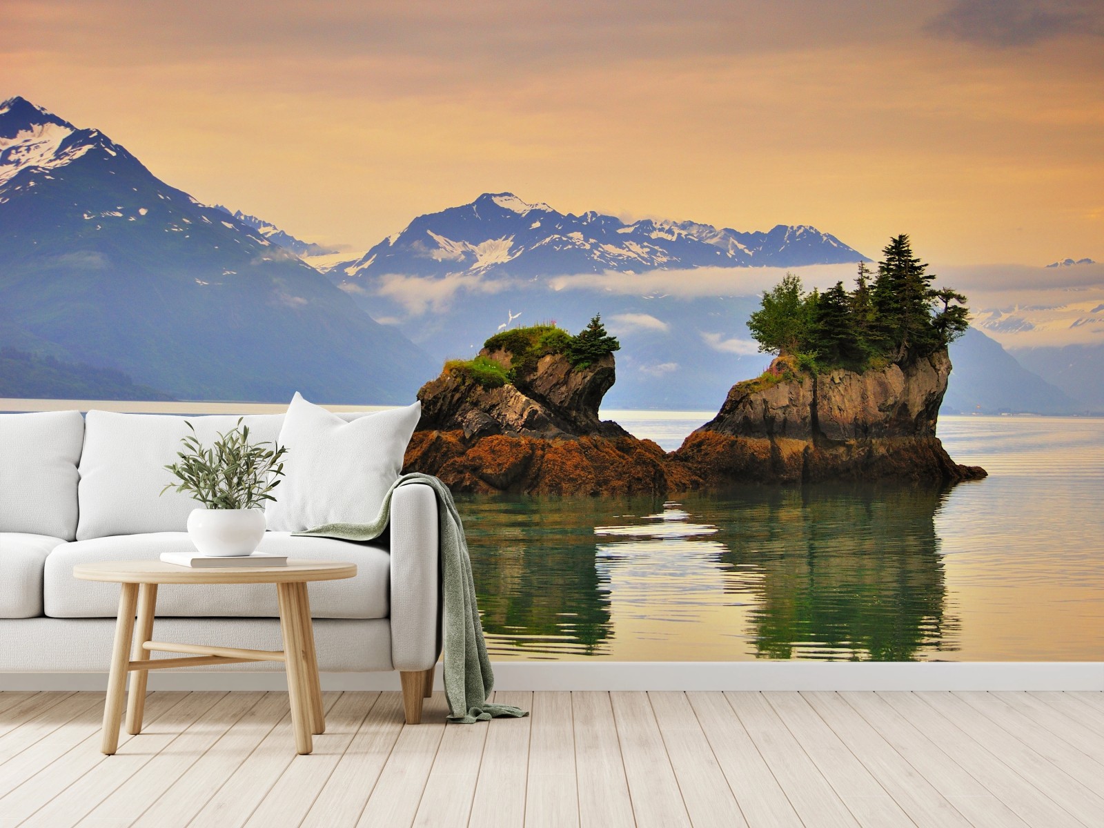 Fototapete Ruhige inselspiegelungen bei sonnenuntergang