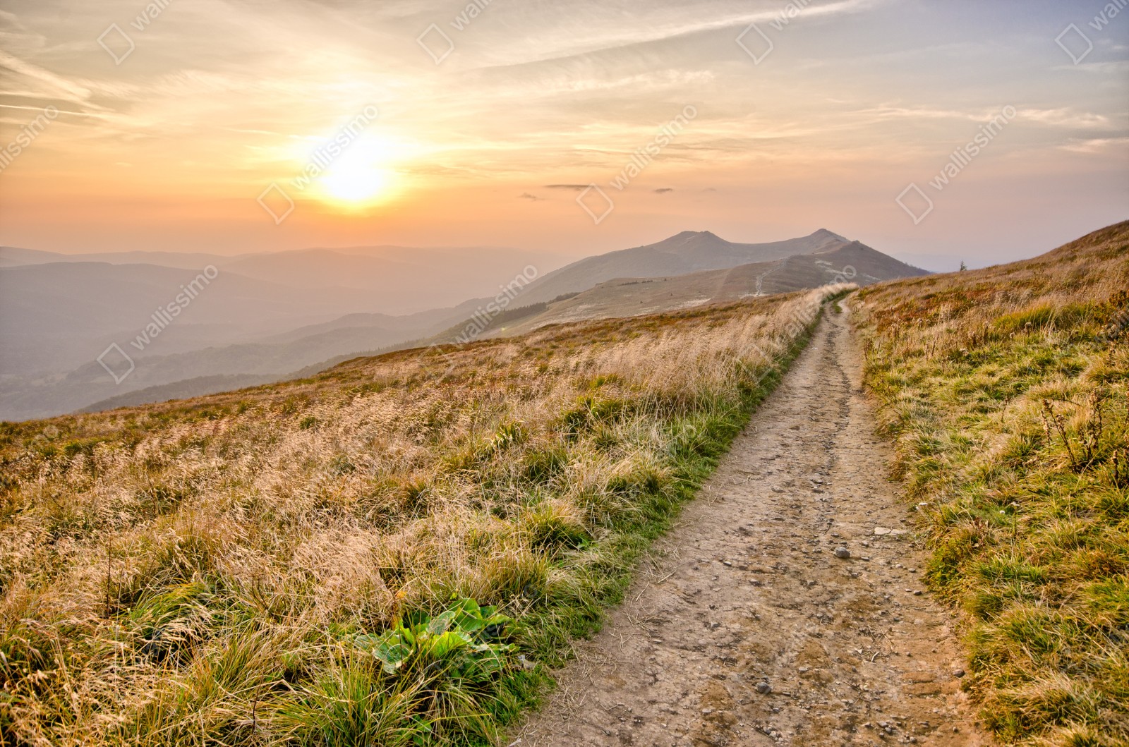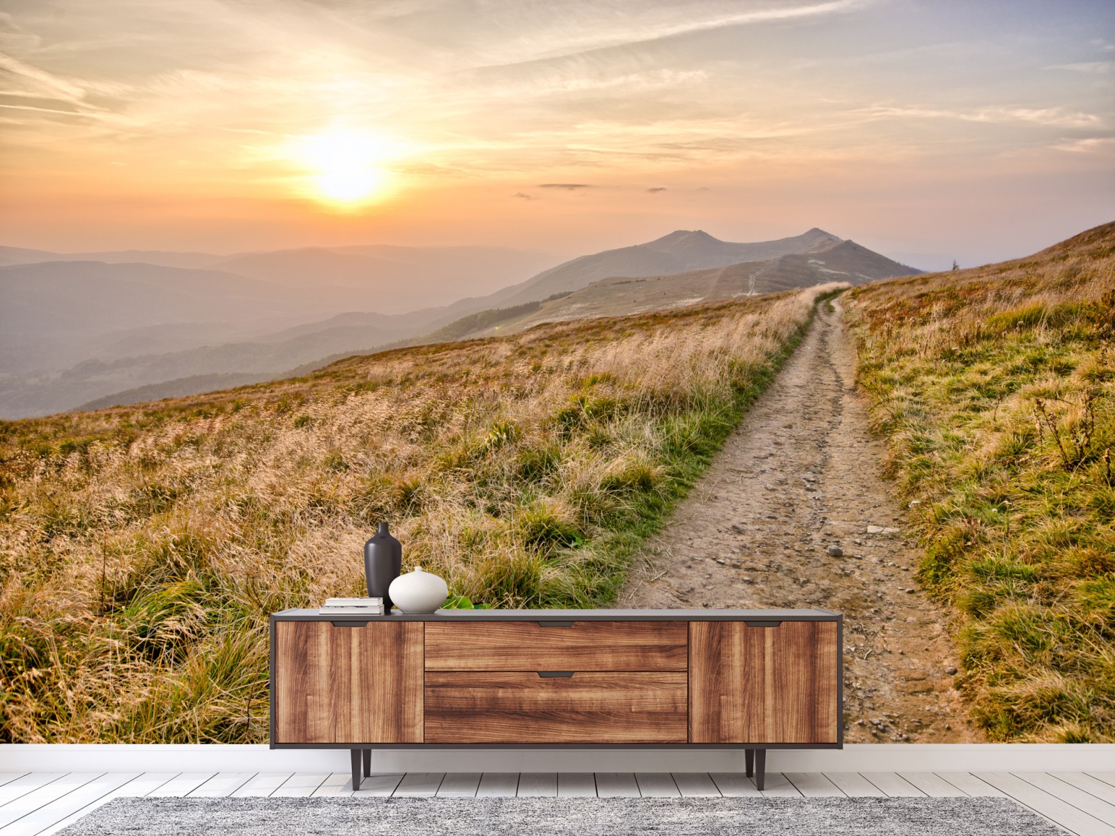 Fototapete wanderpfad bei sonnenuntergang in Bieszczady