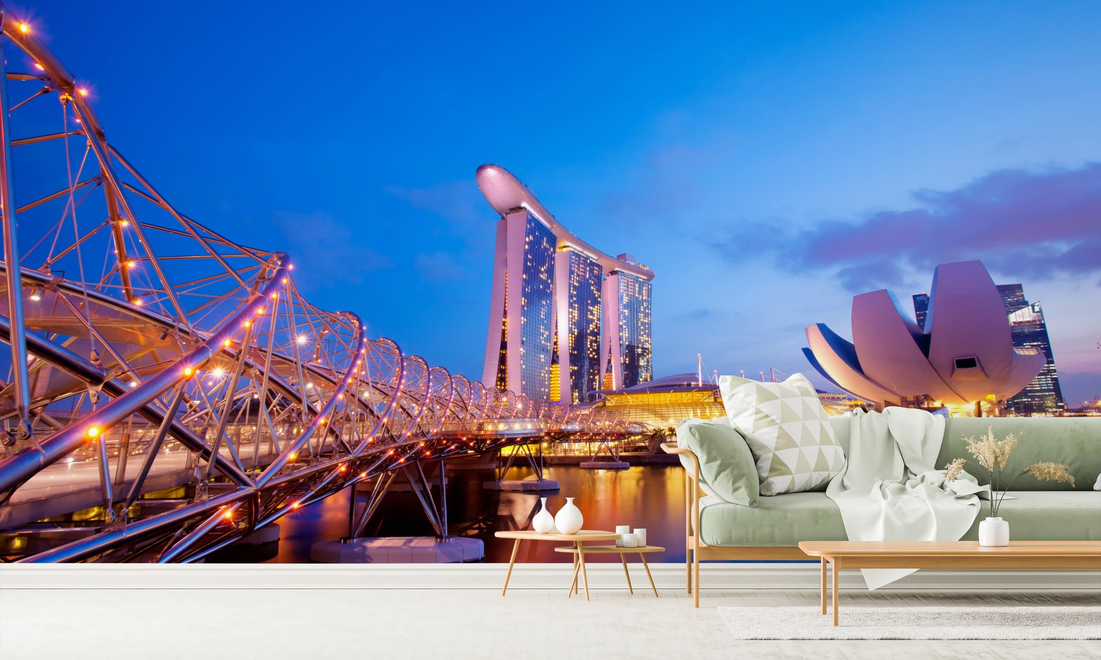 Fototapete Stadtbild Marina Bay bei dämmerung