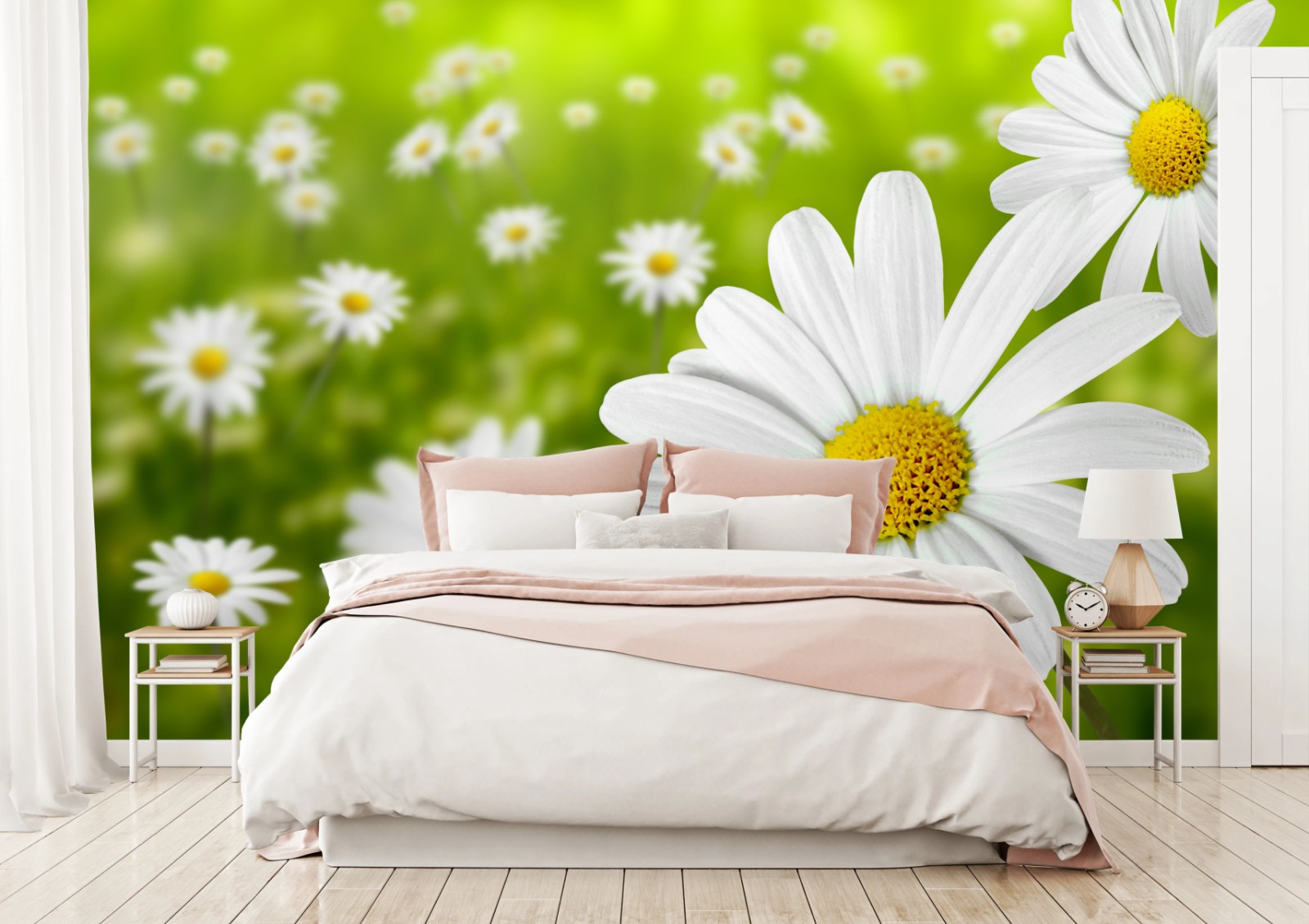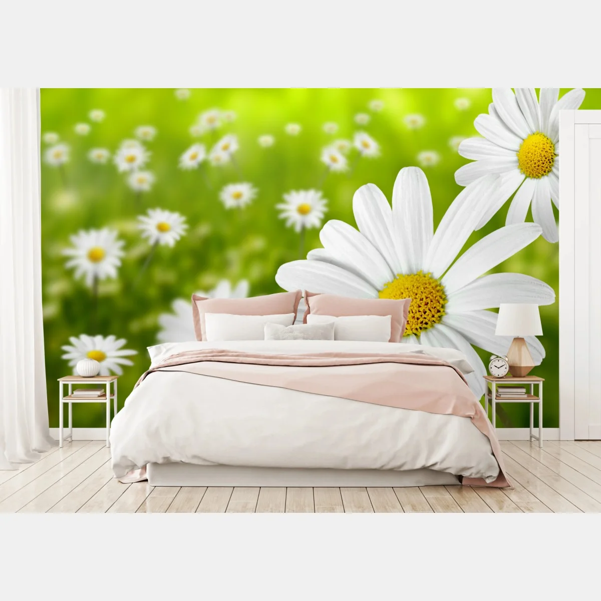 Fototapete Weiße gänseblümchen auf der wiese