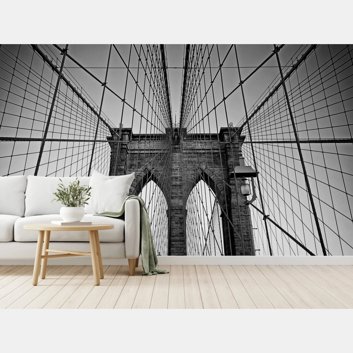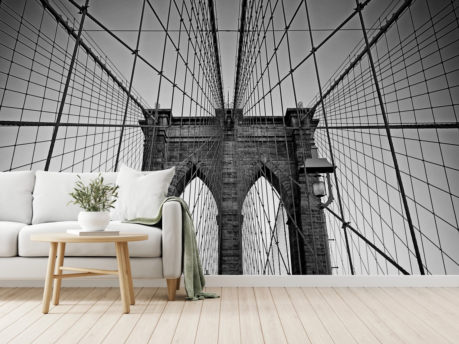 Fototapete Symmetrische hängebrücke in schwarzweiß