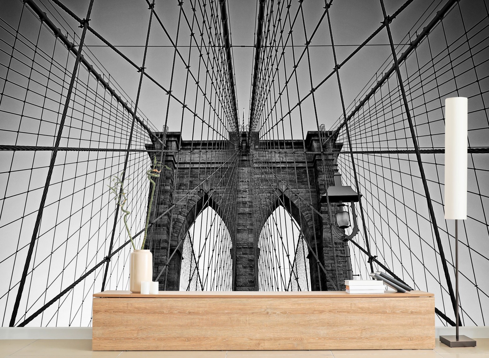 Fototapete Symmetrische hängebrücke in schwarzweiß