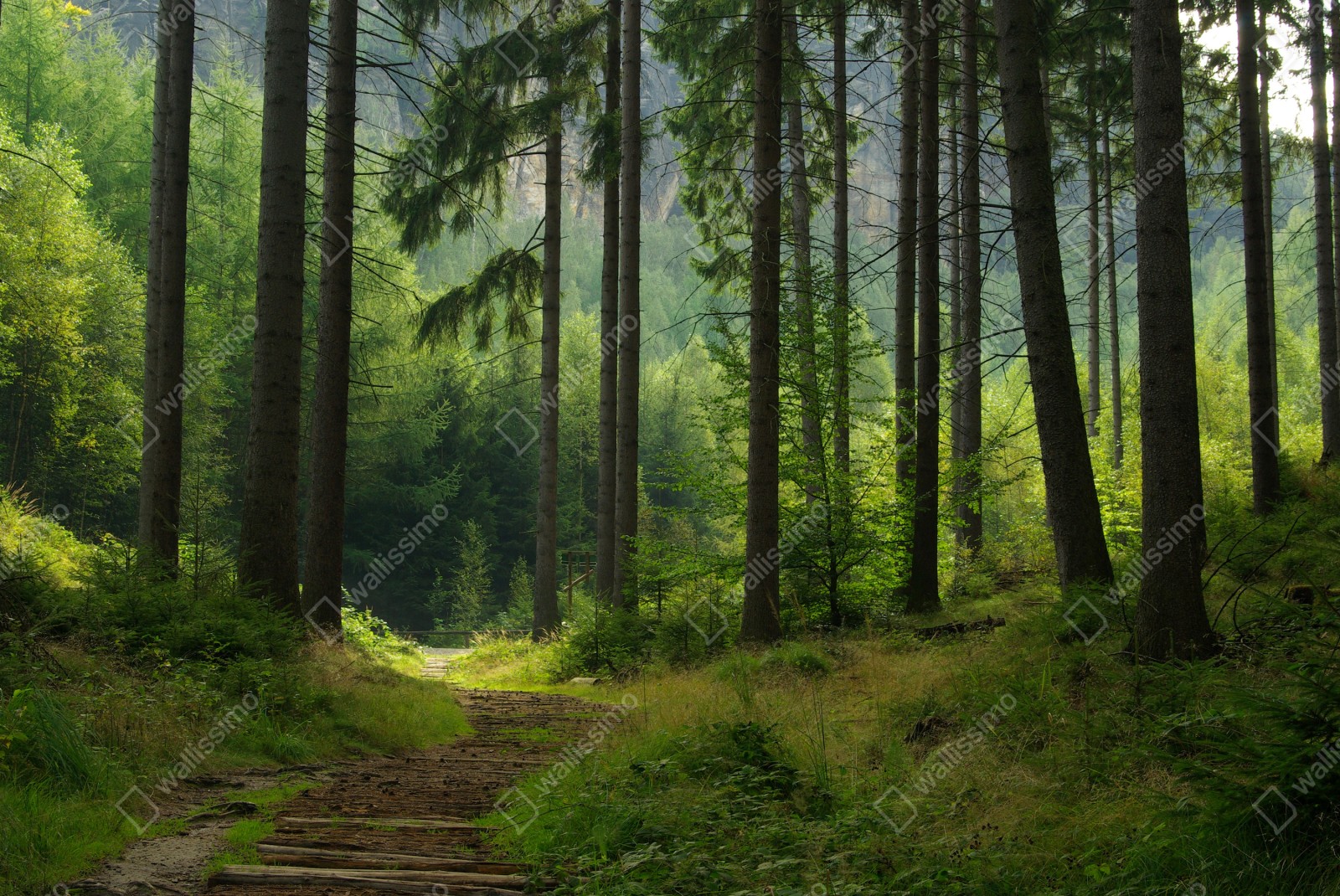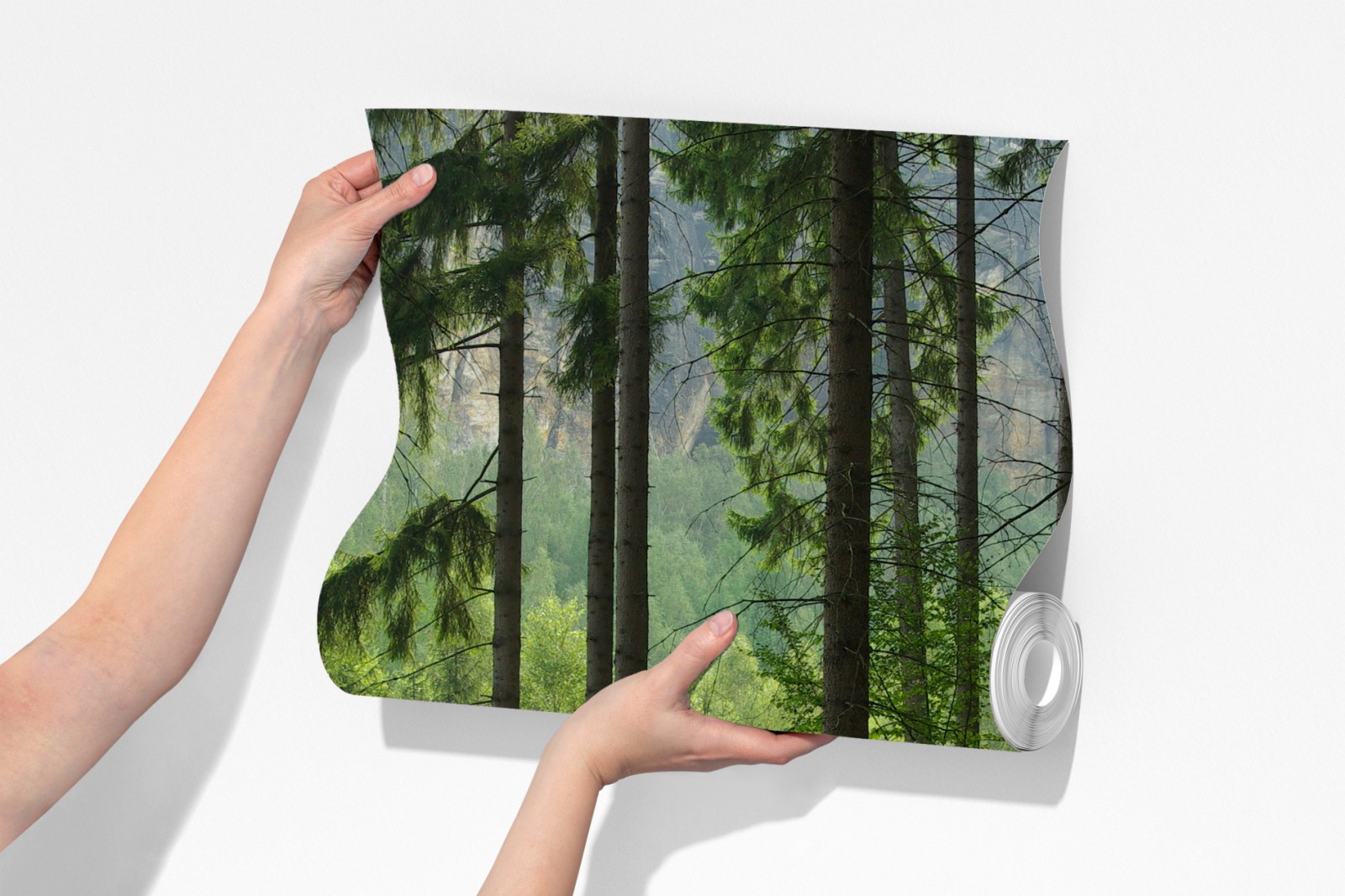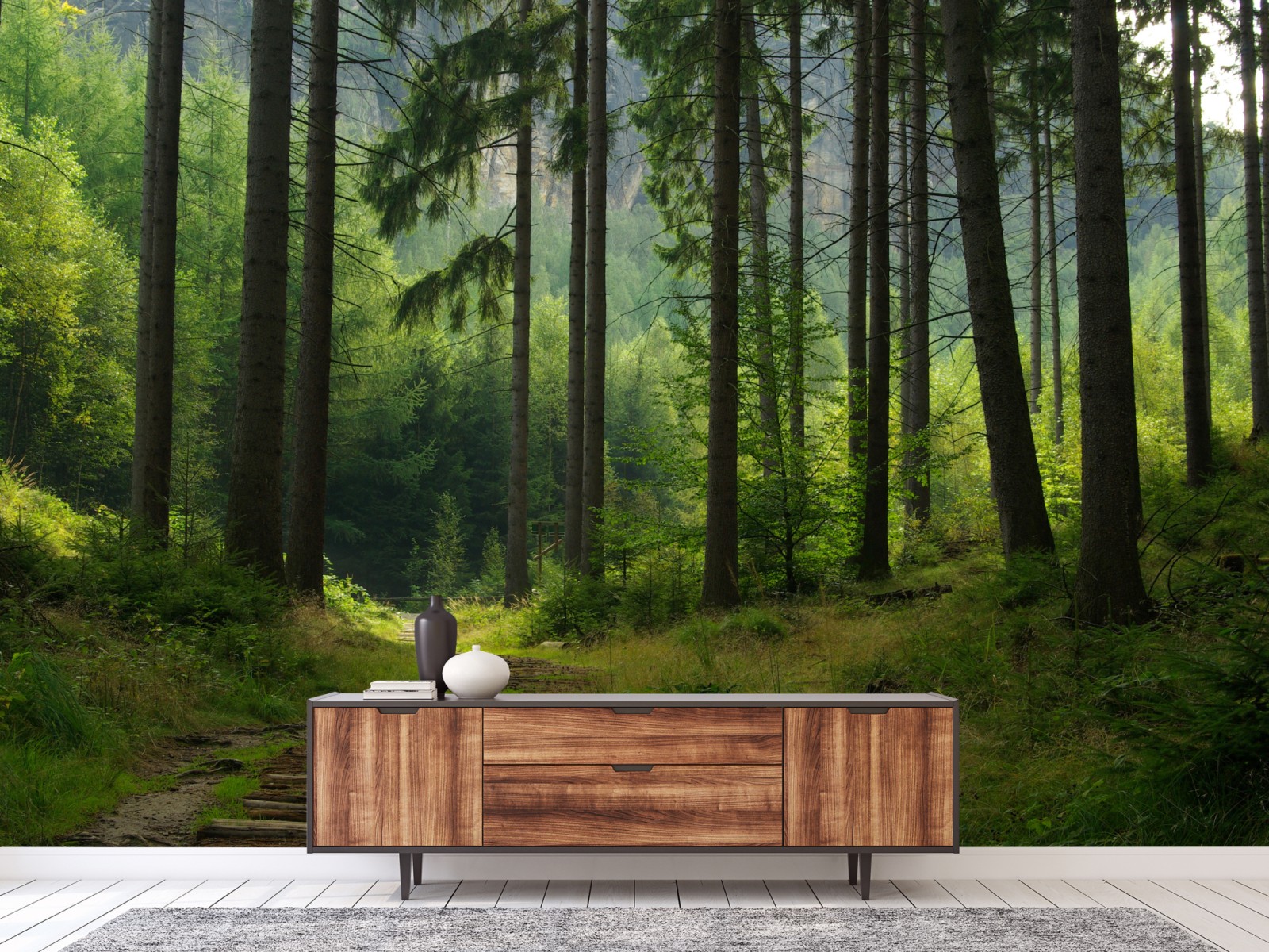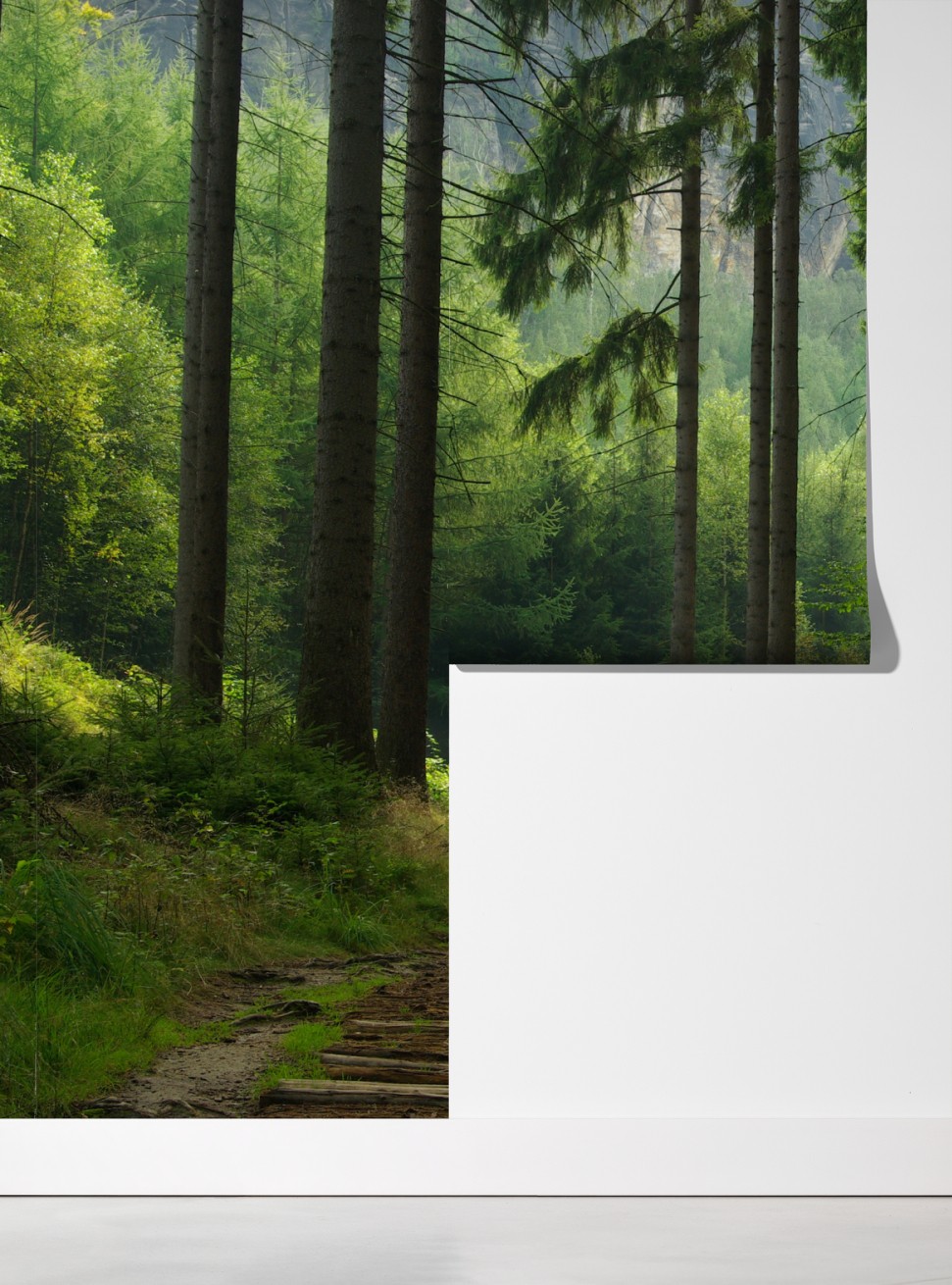 Bringen Sie beruhigende Waldatmosphäre in Ihr Zuhause mit dieser üppig grünen Waldszene.