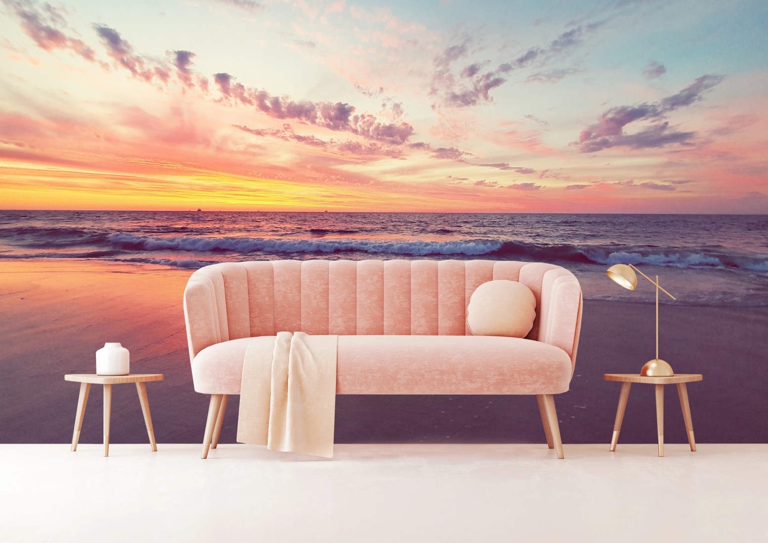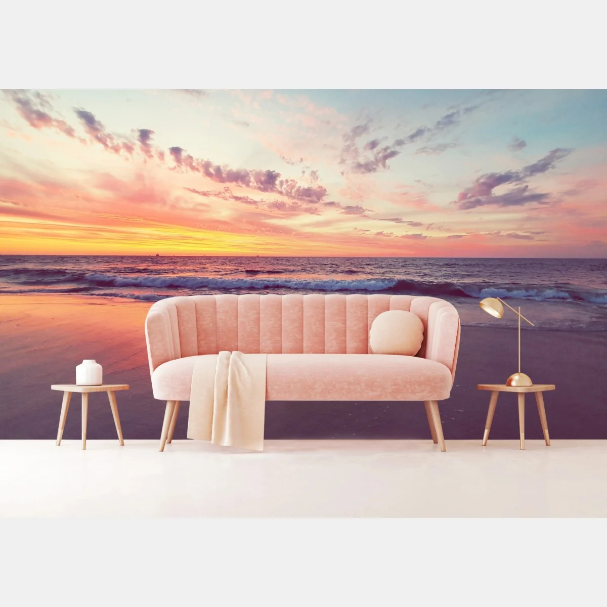 Fototapete Pastelliger sonnenuntergang über ruhigem meer