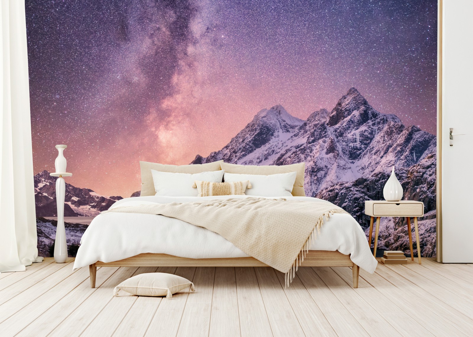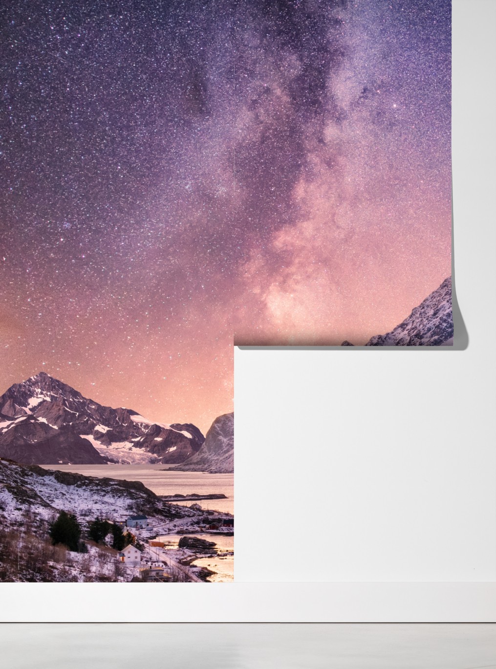 Fototapete milchstraße über verschneiten bergen in Norwegen – Wallnifity®