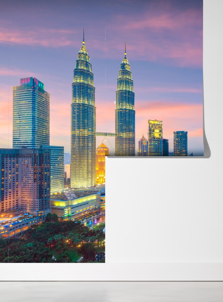 Fototapete Kuala Lumpur skyline bei dämmerung