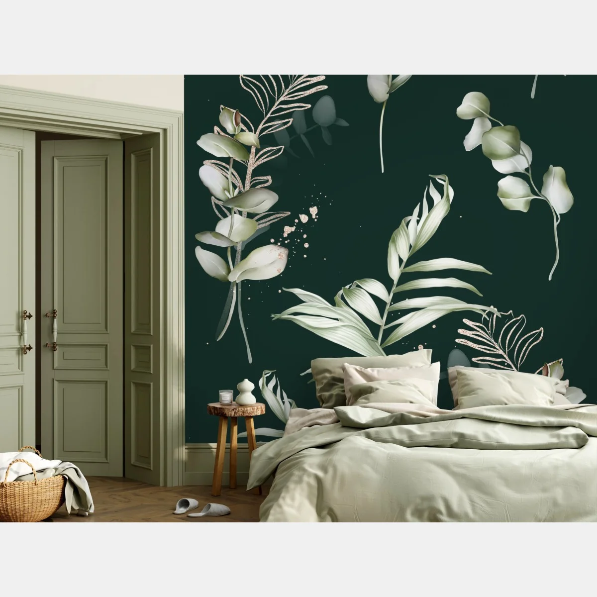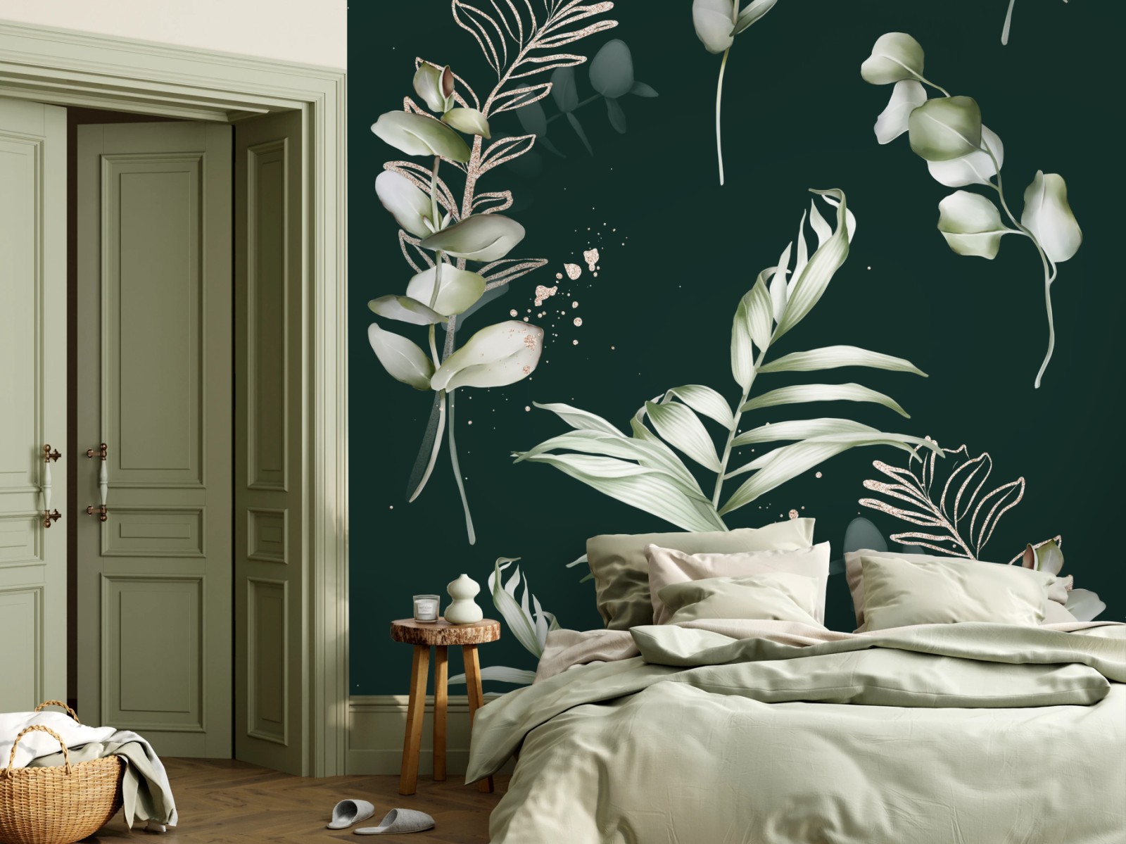 Fototapete Eukalyptus muster mit goldakzenten