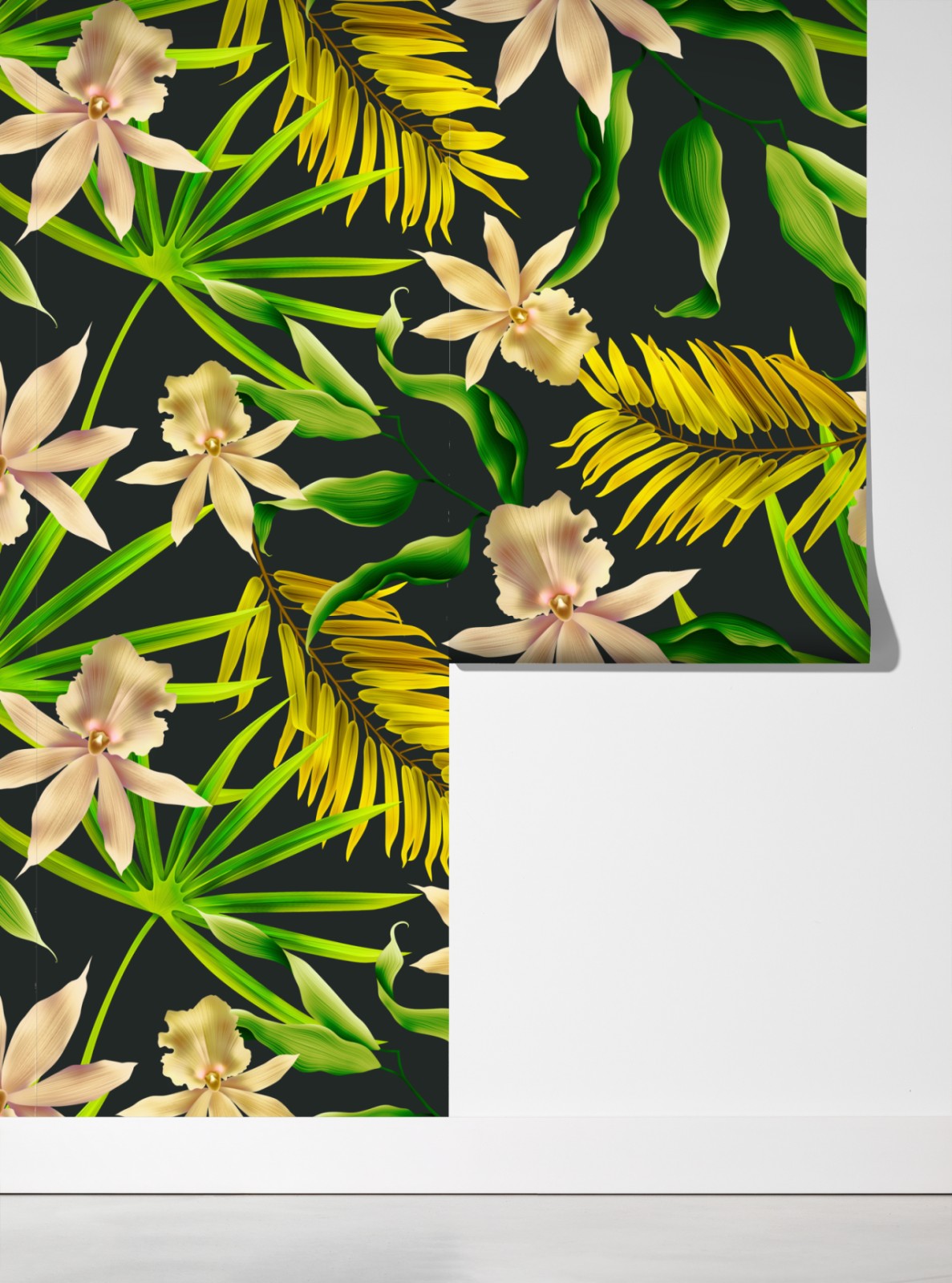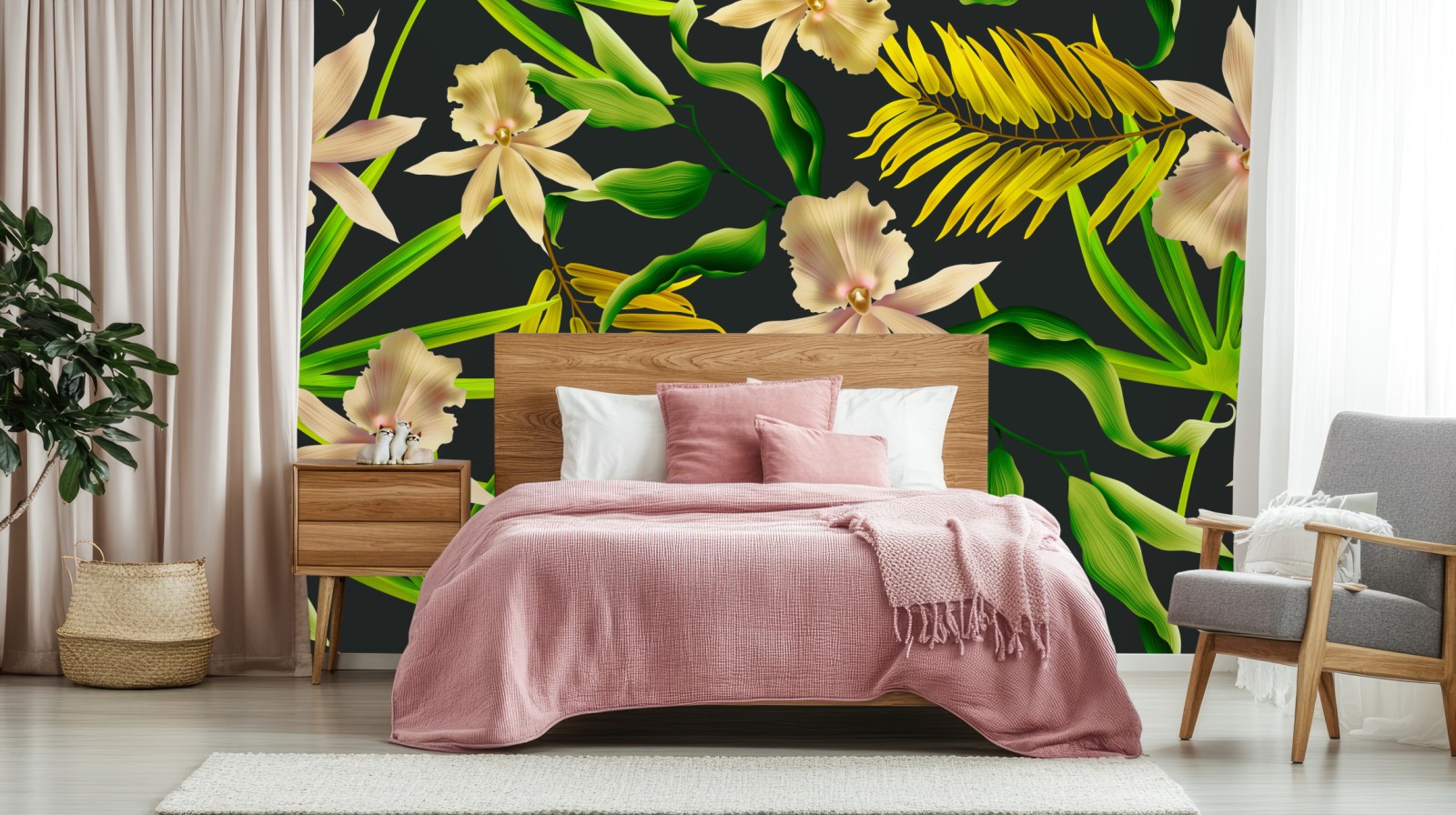 Verleiht dem Raum eine tropische Atmosphäre mit elegantem Orchideen- und Blattmuster, ideal zum Aufpeppen jeder Wand.