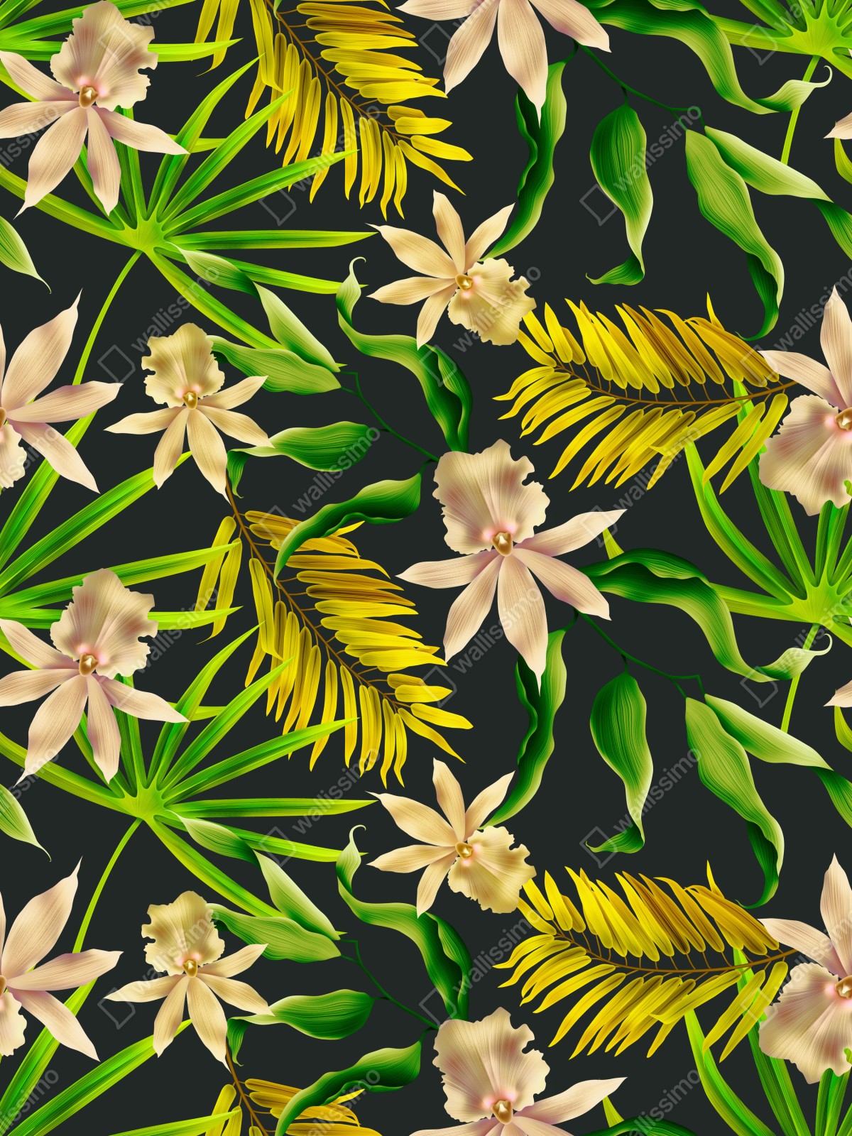Fototapete tropisches orchideenmuster auf dunklem hintergrund