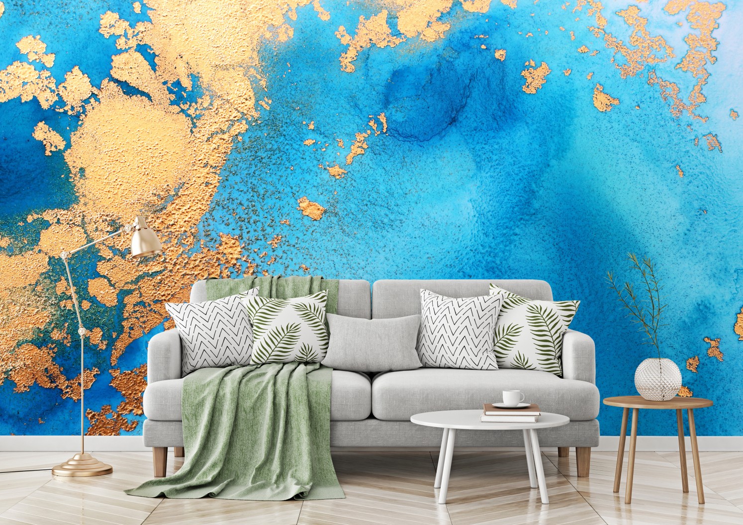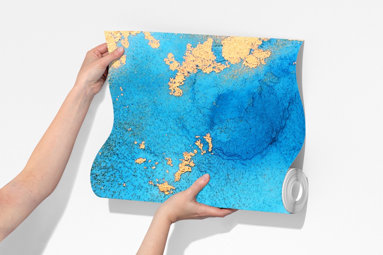 Fototapete blau-gold abstrakte ozeantextur