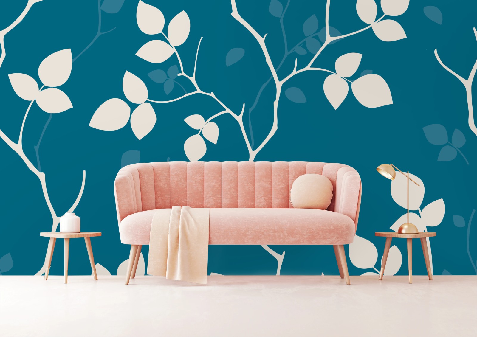 Fototapete Türkises botanisches blattmuster