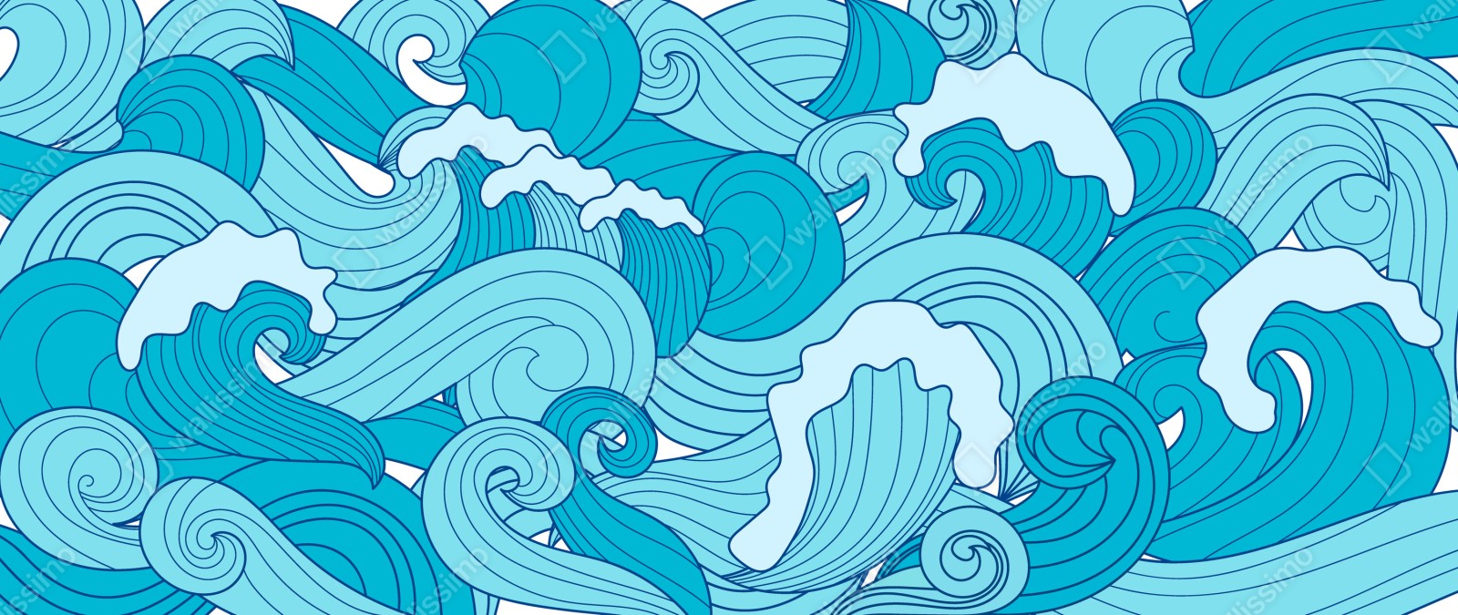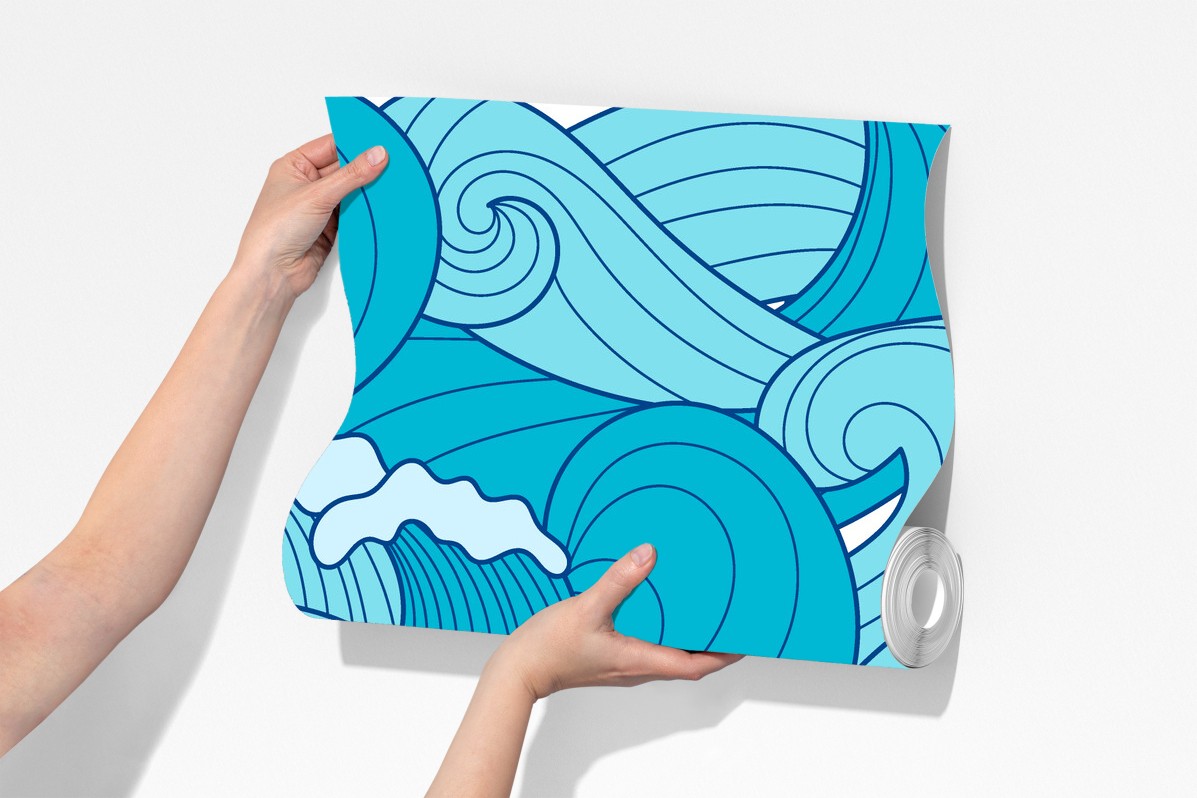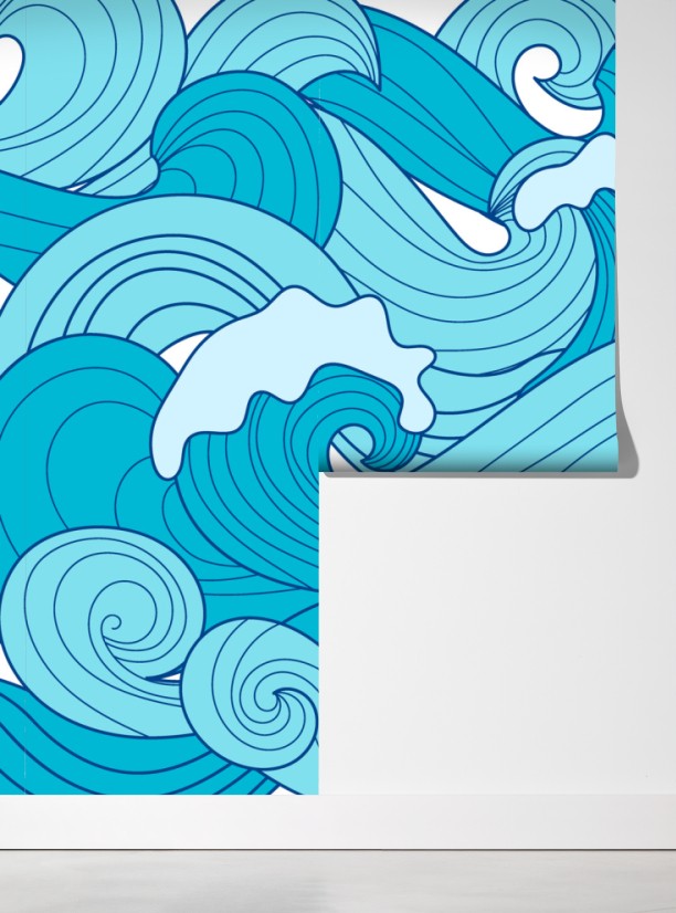Bringen Sie mit dieser lebendigen Illustration von Wellen beruhigende Meeresatmosphäre in Ihr Zuhause und verleihen Sie jeder Wand Farbe und Dynamik.