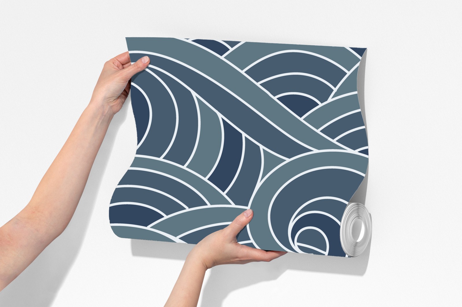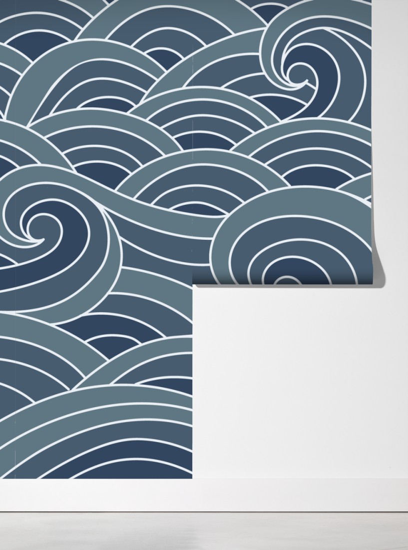 Bringen Sie beruhigende Meeresenergie in Ihren Raum mit diesem stilisierten Wellenmuster, ideal für Badezimmer und minimalistische Einrichtungen.