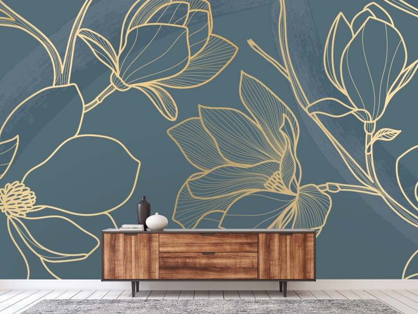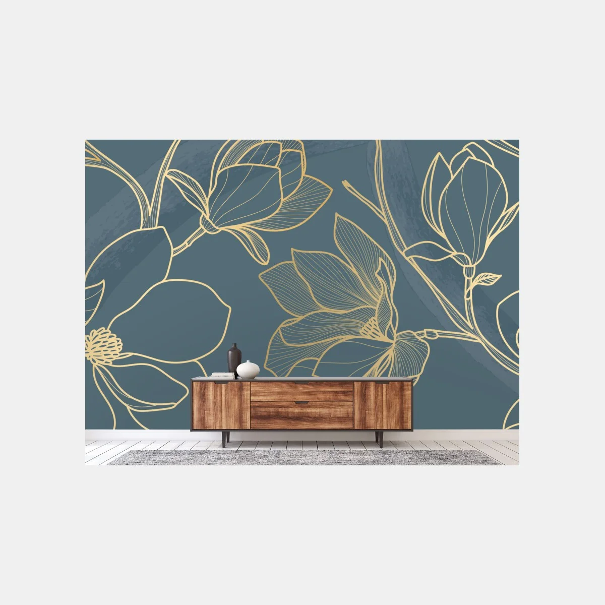 Fototapete Goldene magnolie auf türkisfarbenem hintergrund